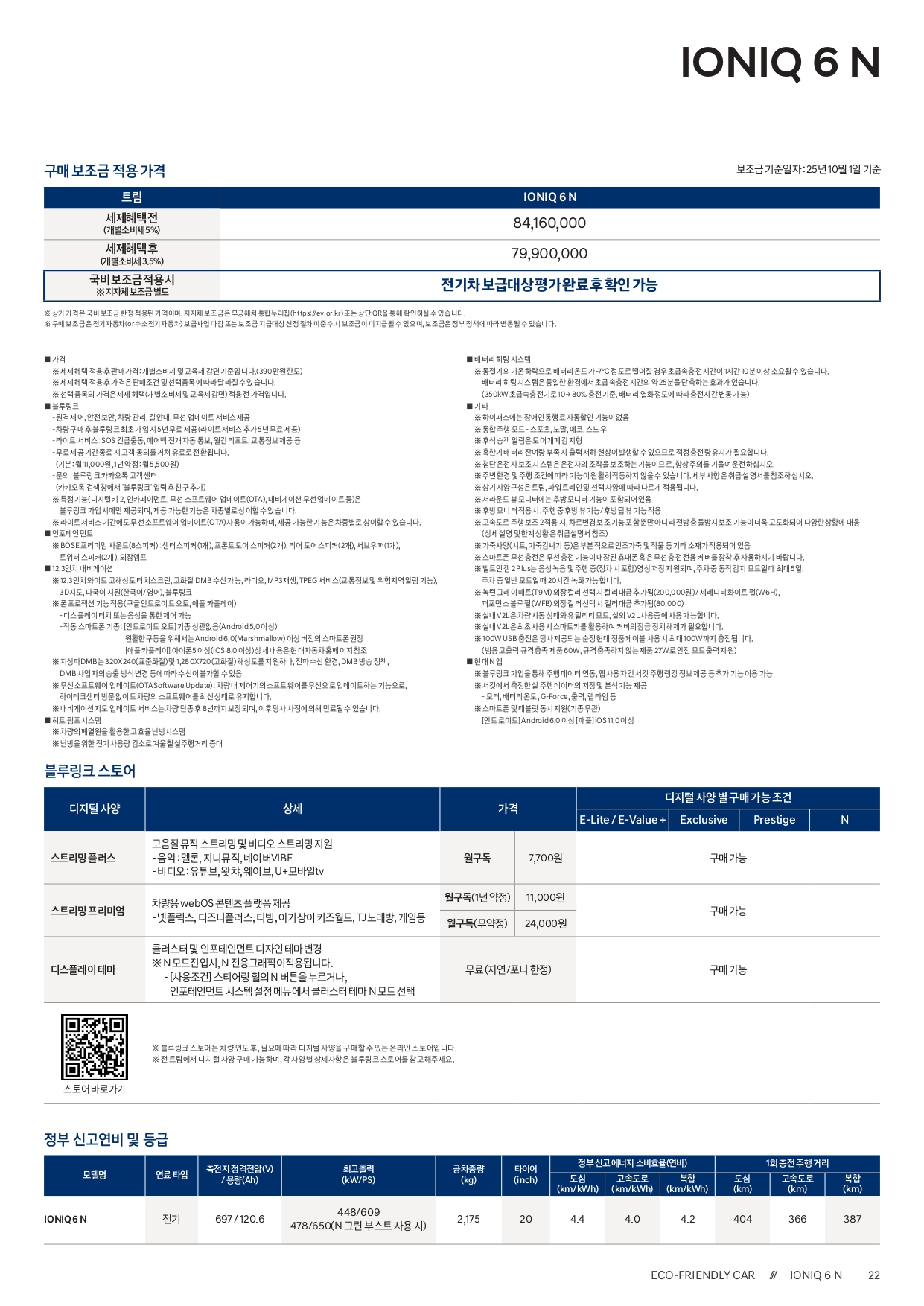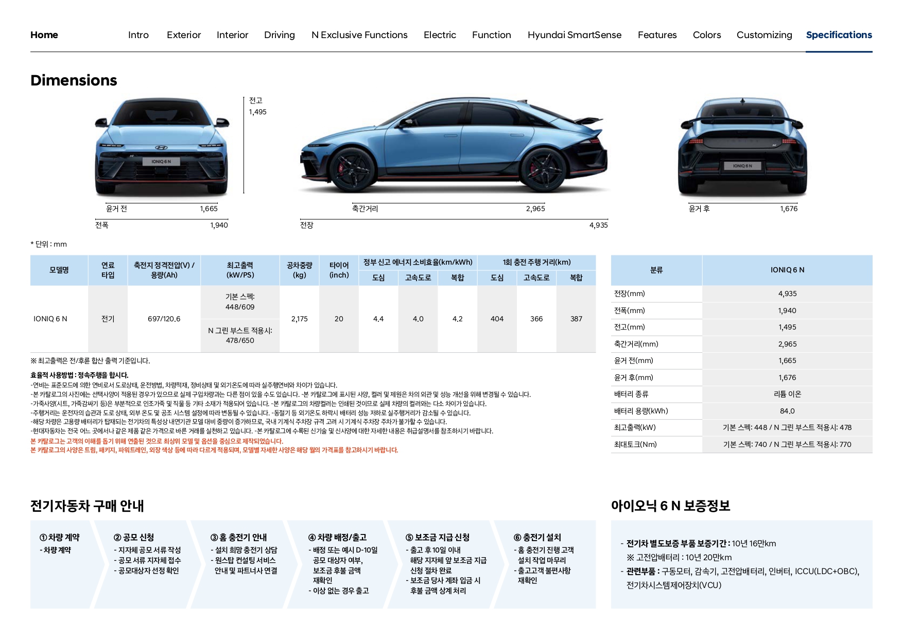 이 또한 비교하시기 편하게, 아이오닉 5N 및 6N 두 모델 모두의 제원을 준비하였습니다.