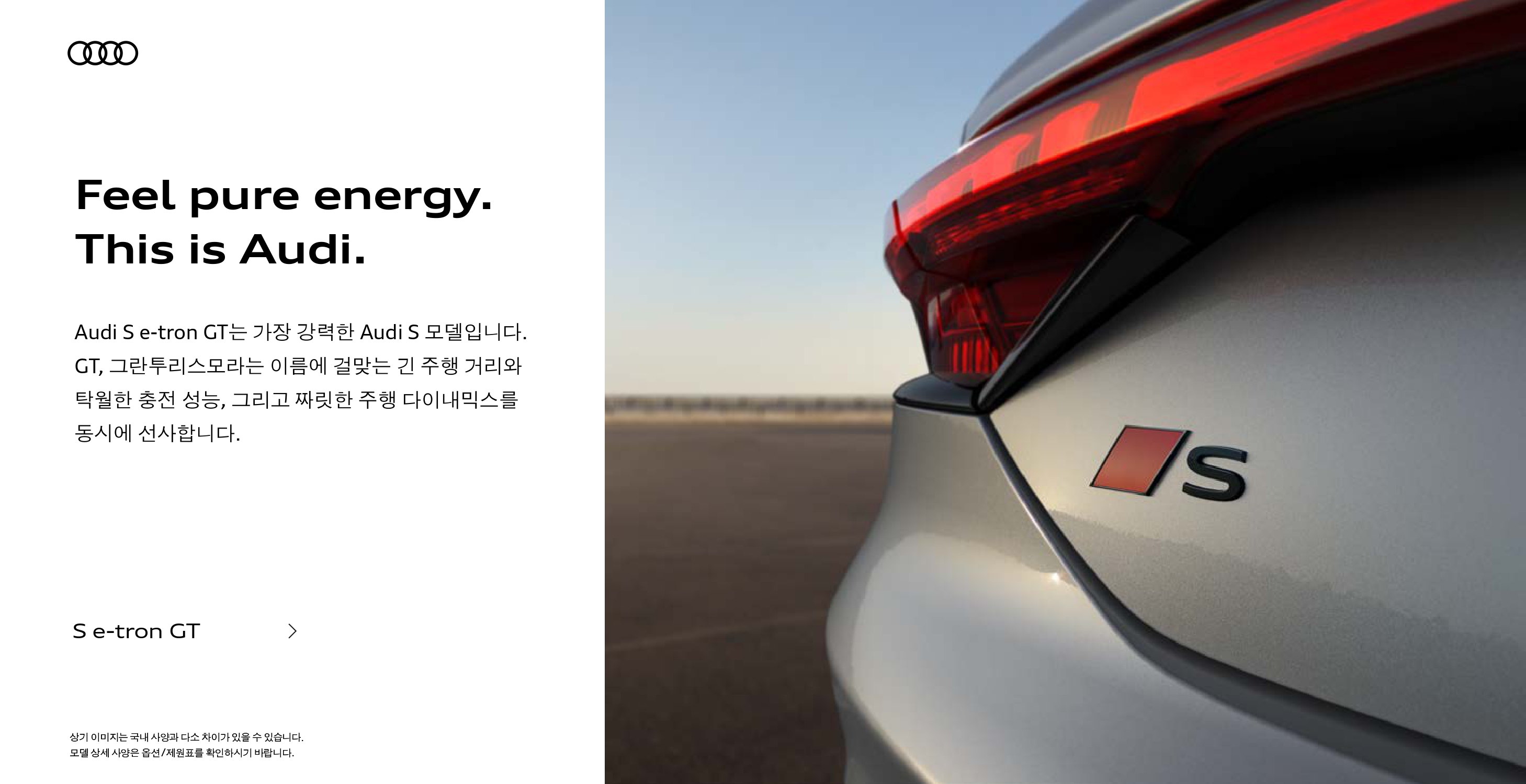 해외 시장의 경우, S e‑tron GT / RS e‑tron GT / RS e‑tron GT Performance 이렇게 세 가지 사양이 출시를 하였고,