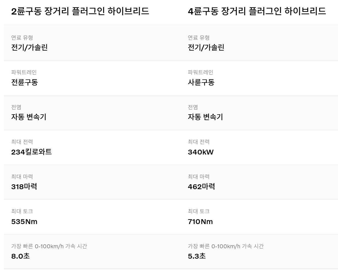 참고로, 위 표는 고성능 버전인 4WD 버전의 스펙인데, 2WD 버전으로 가면 확 떨어집니다.