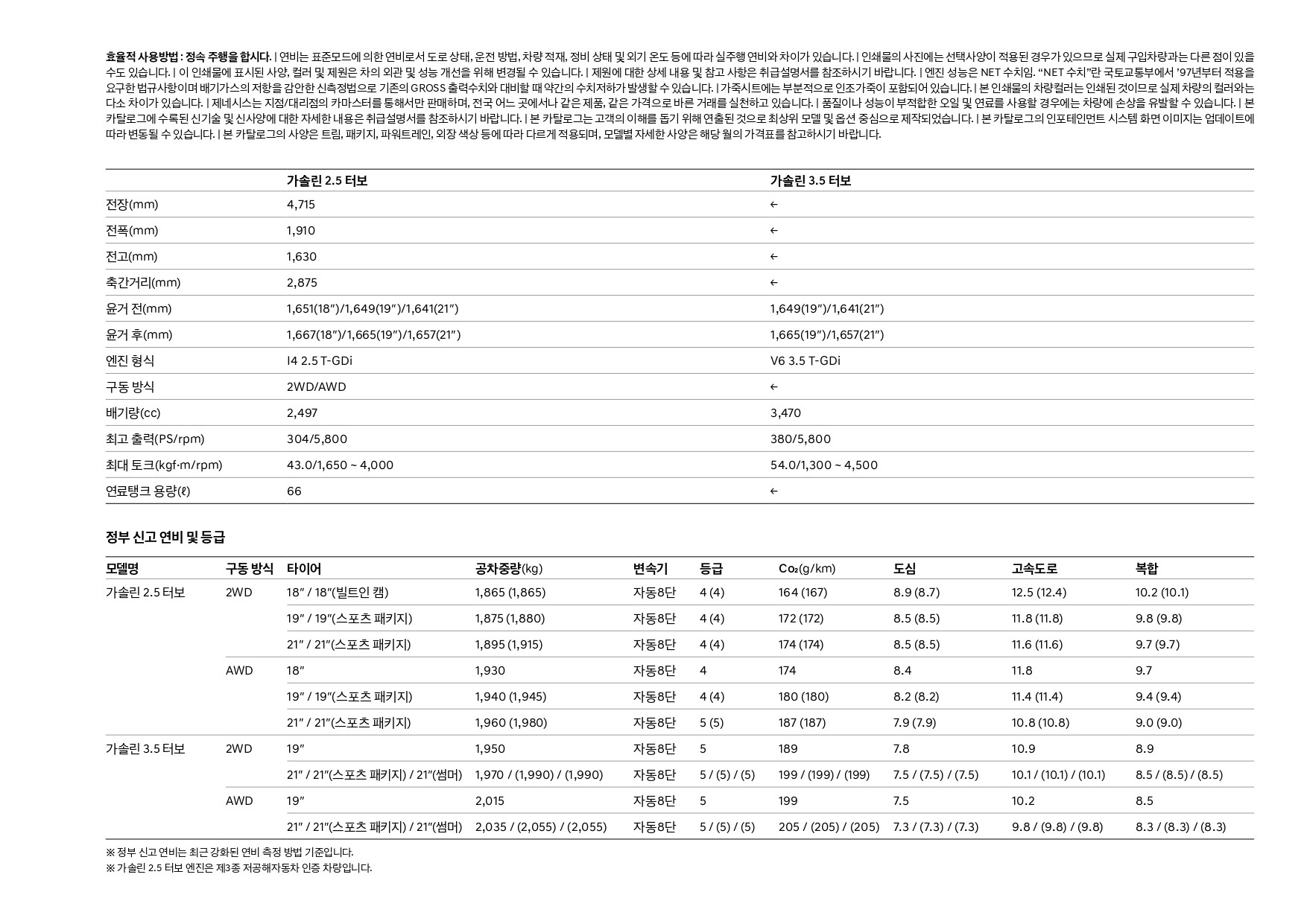 파워트레인 또한 기존과 마찬가지로 4기통 2.5 터보 및 6기통 3.5 터보 두 가지로 판매됩니다.