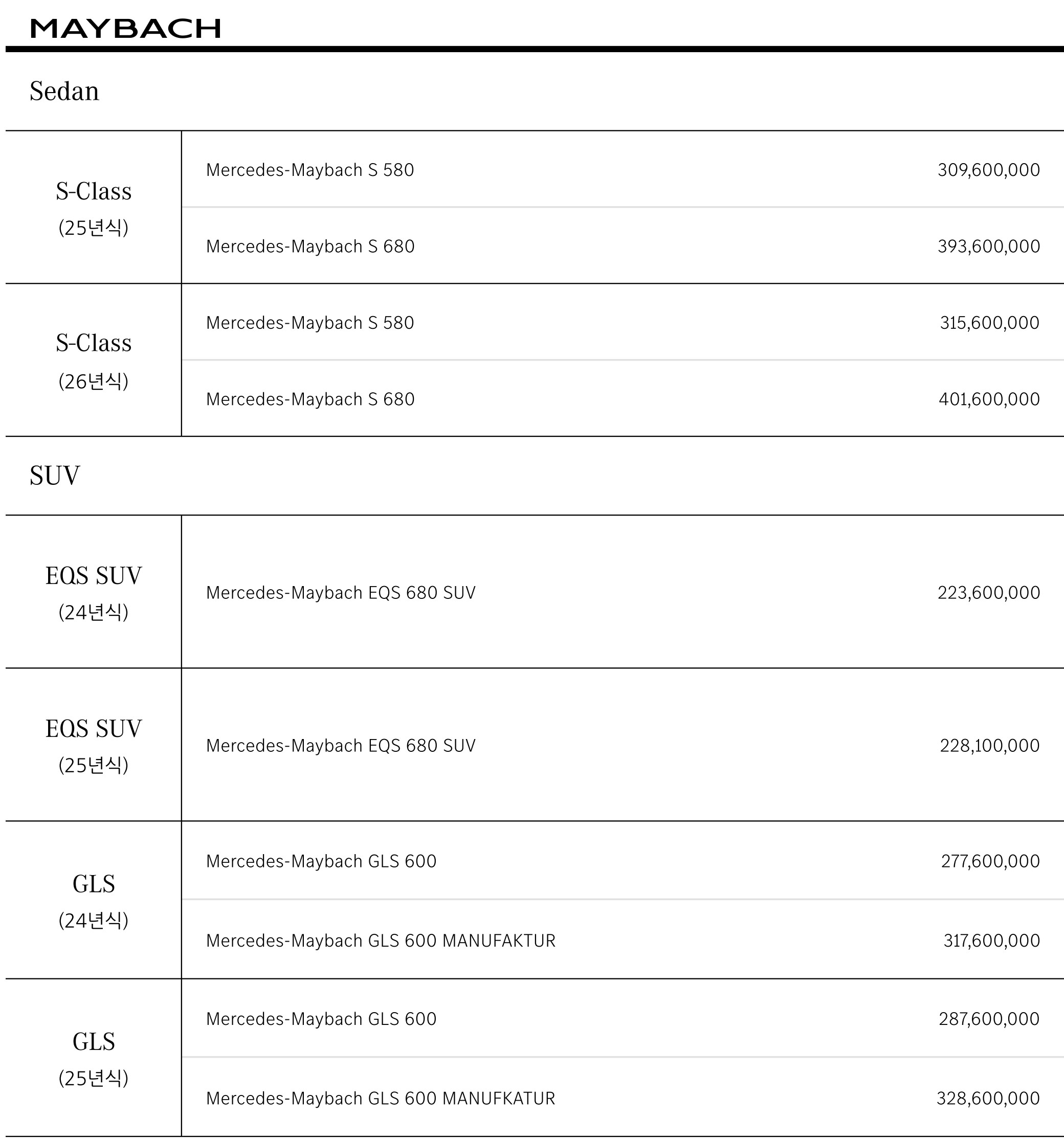 S580 마이바흐 / S680 마이바흐 / EQS680 SUV 마이바흐 / GLS600 마이바흐 가격표