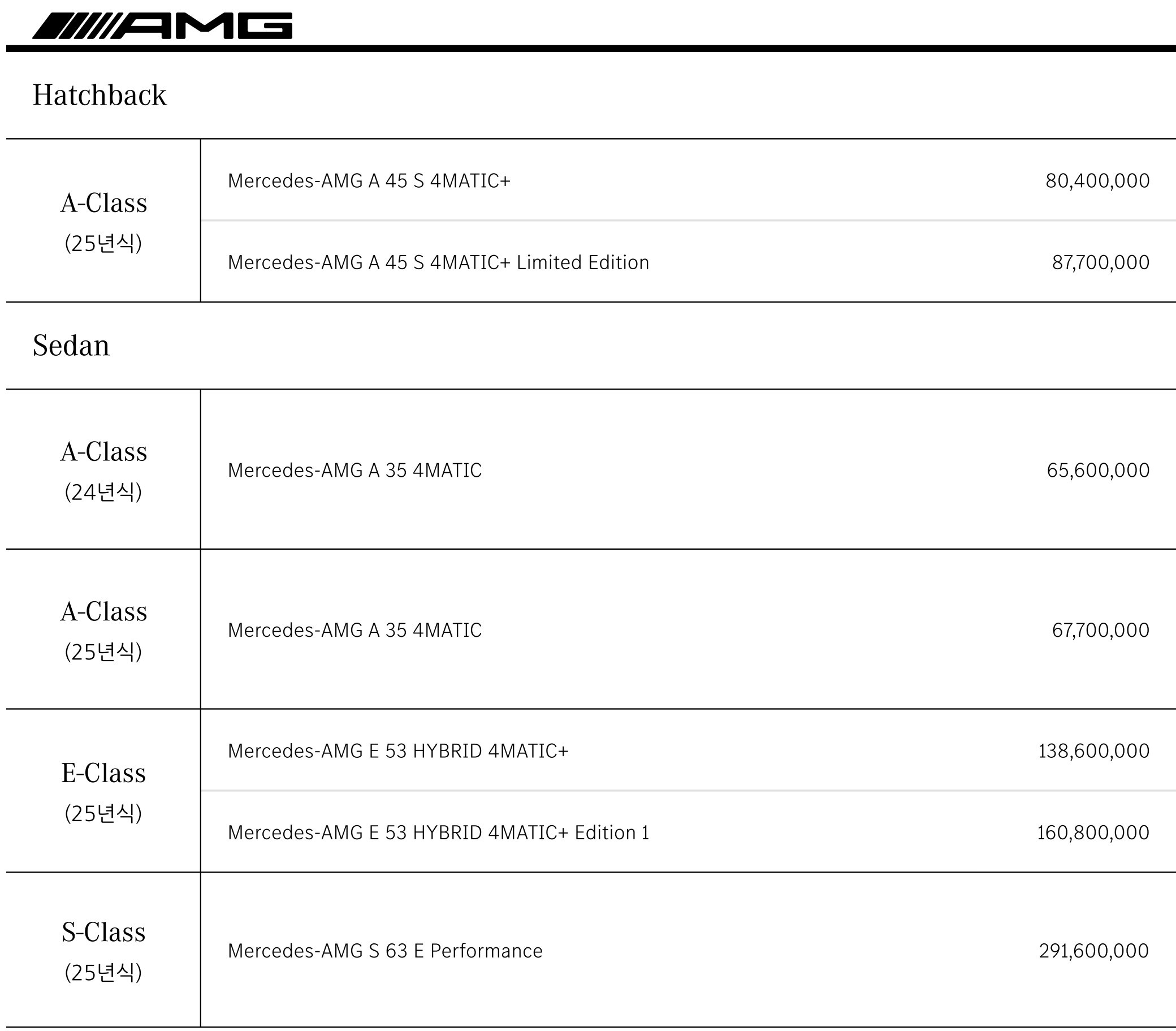 AMG 해치백 & 세단 라인업