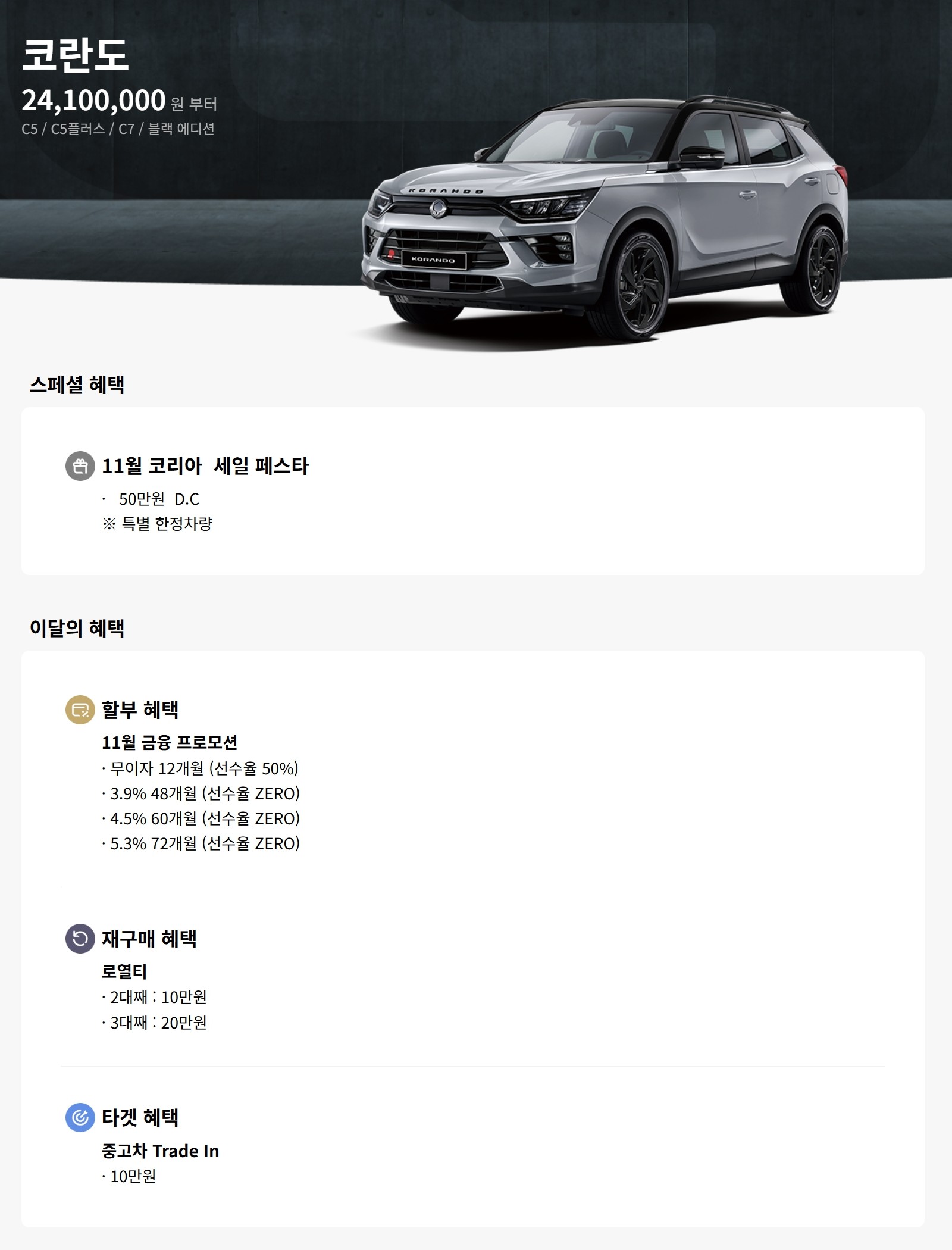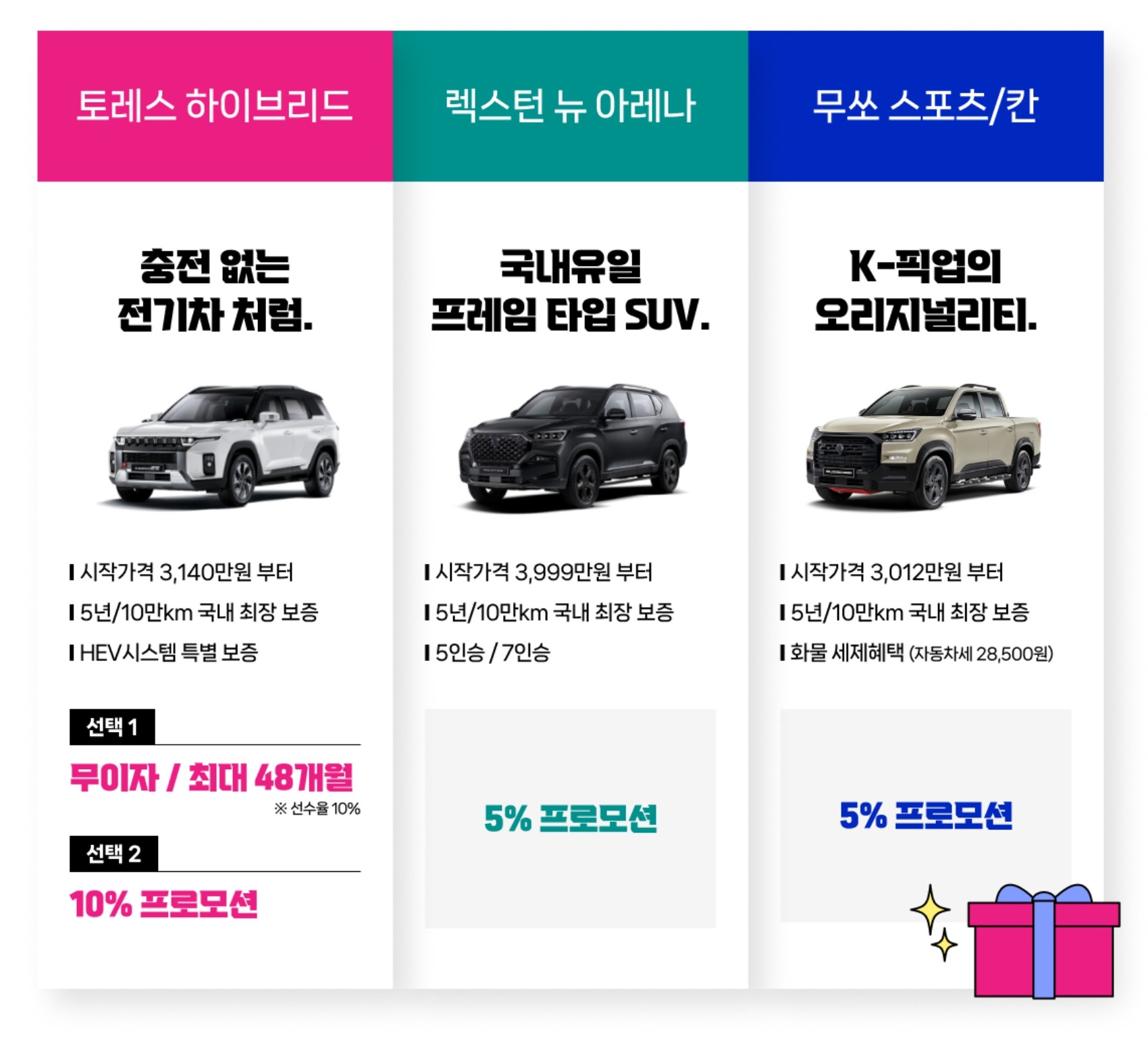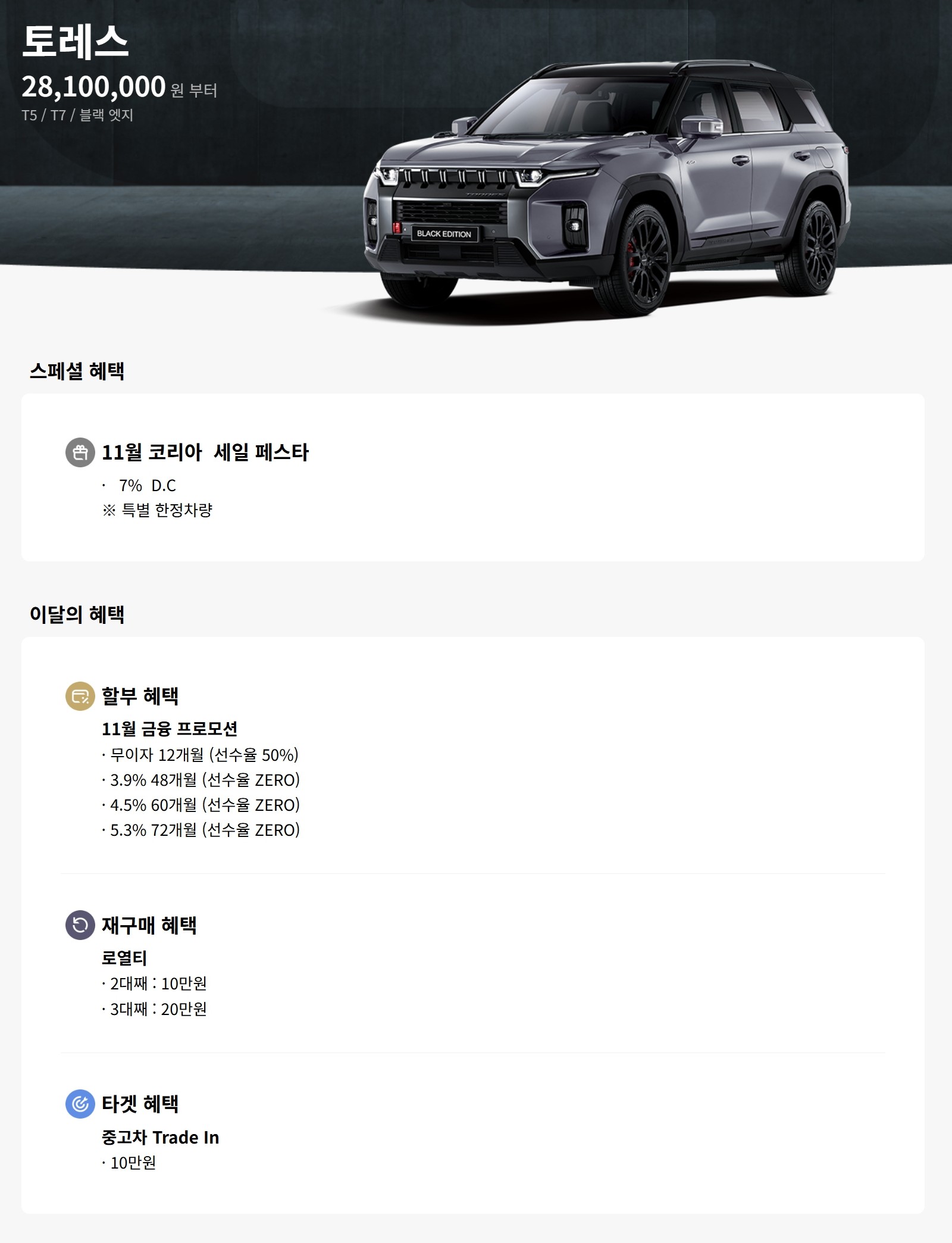 오늘은 여러분들께 2025년 11월 KG모빌리티 전차종 가격표 및 이달의 구매혜택 소개편을 가져볼까 합니다.