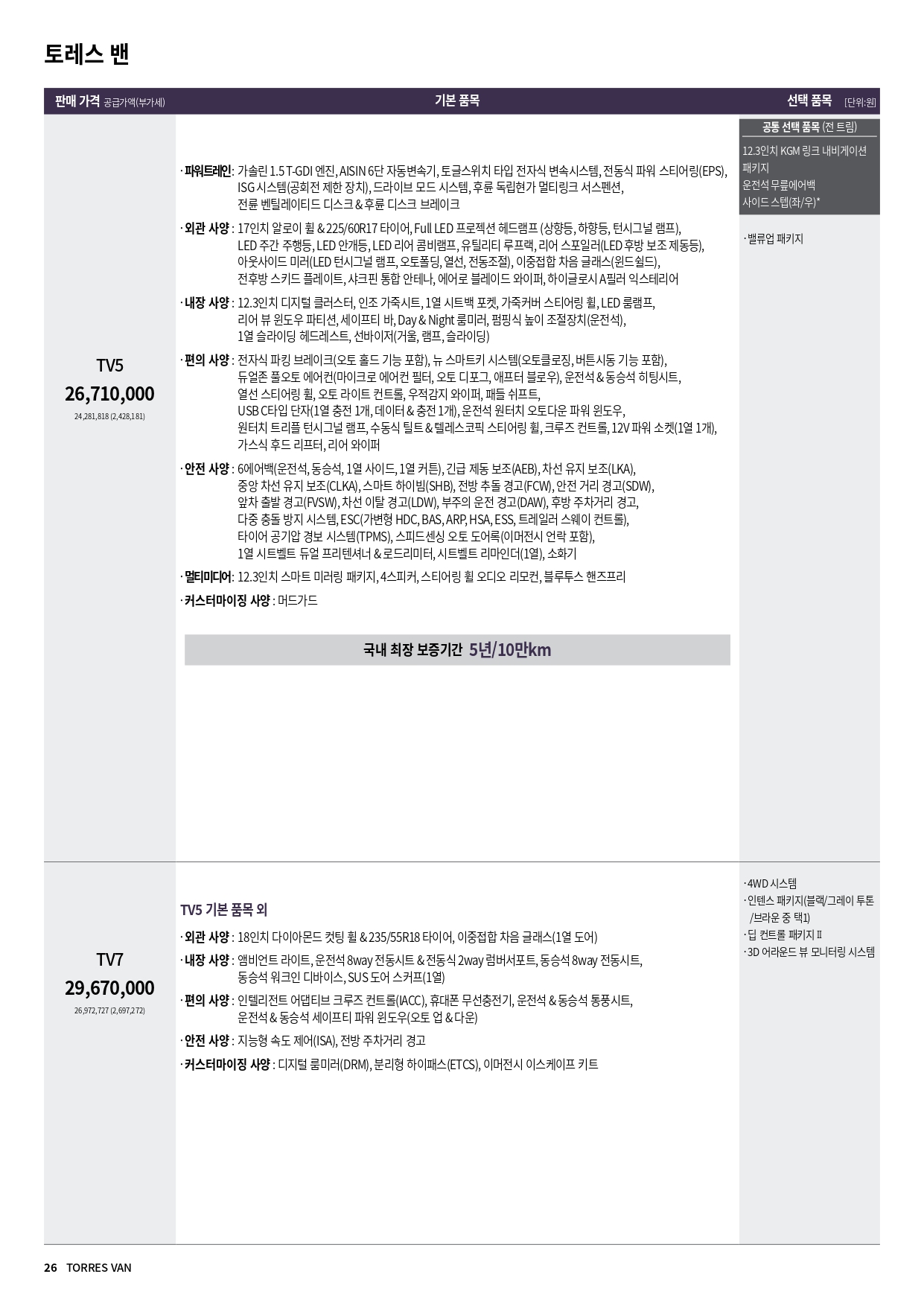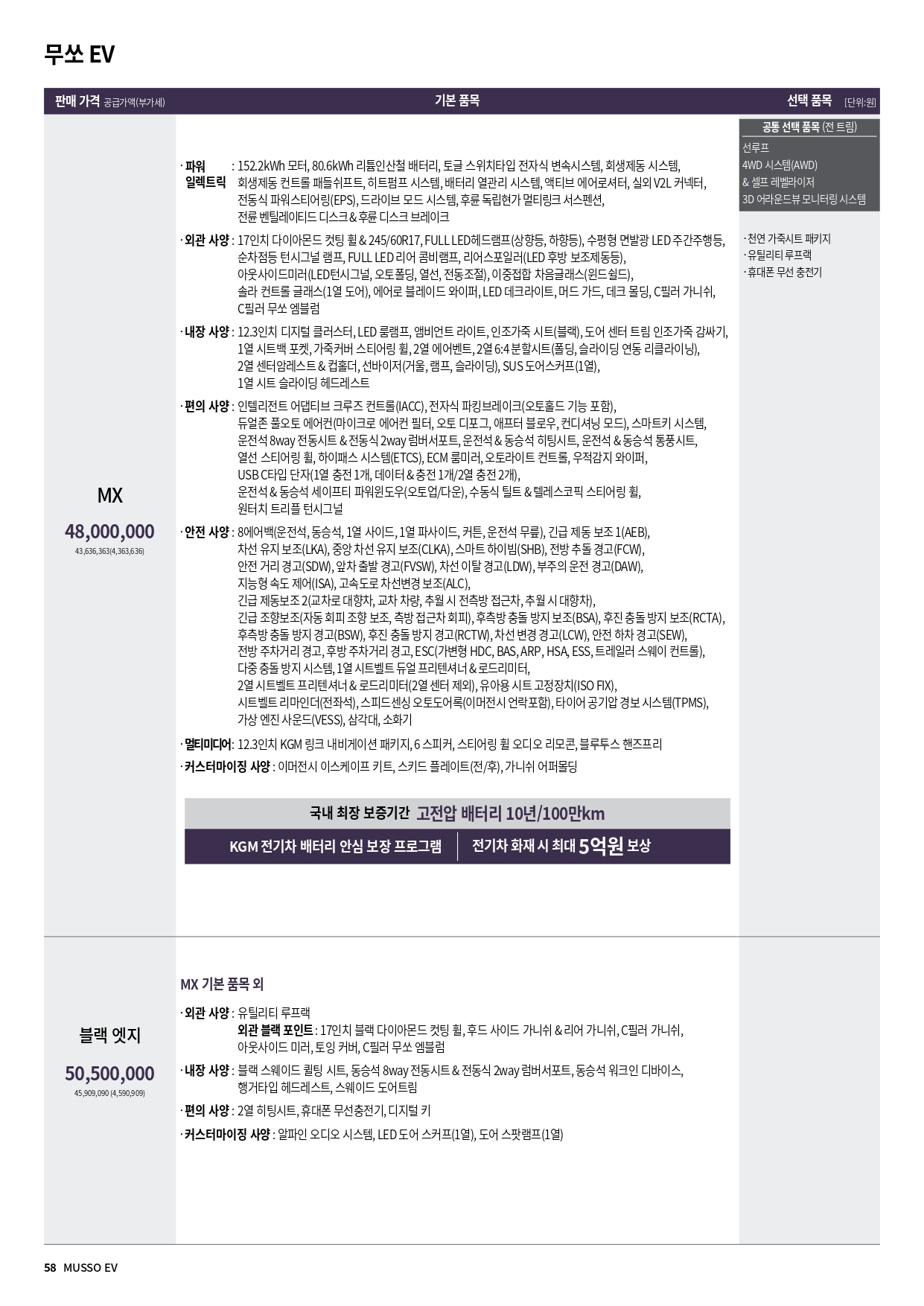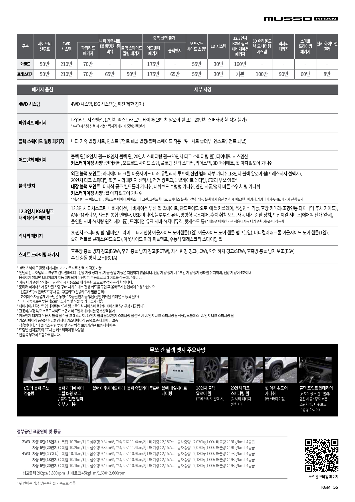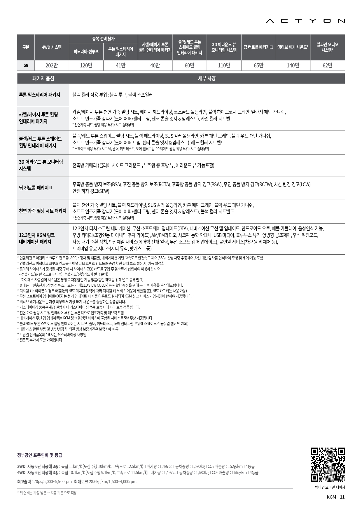 그리고, 아래는 2025년 11월 KG 모빌리티 전차종 가격표입니다.