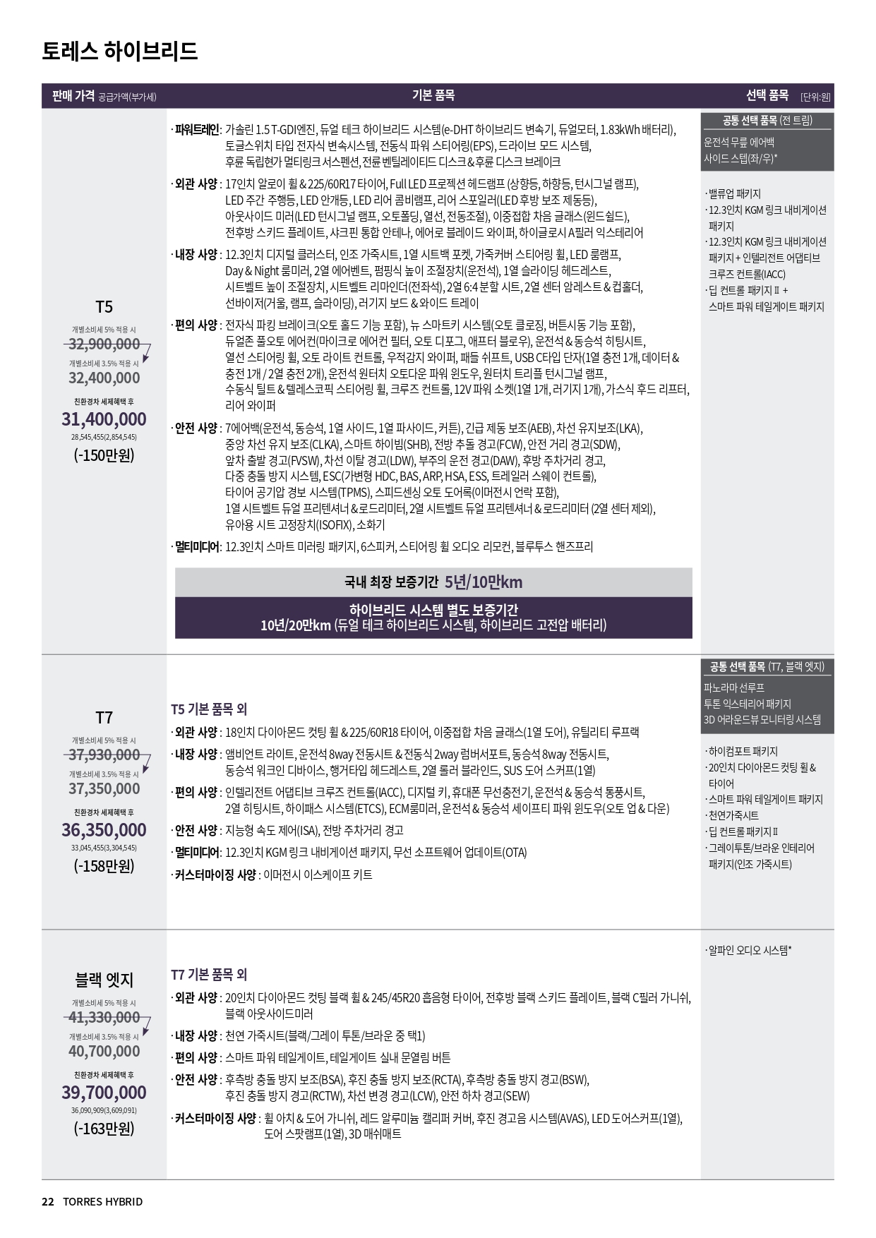 액티언 모델 자체가, 토레스의 스킨 체인지 수준의 차량이기에, 하이브리드 차량이 필요하시다면, 토레스 하이브리드 차량 추천드립니다.