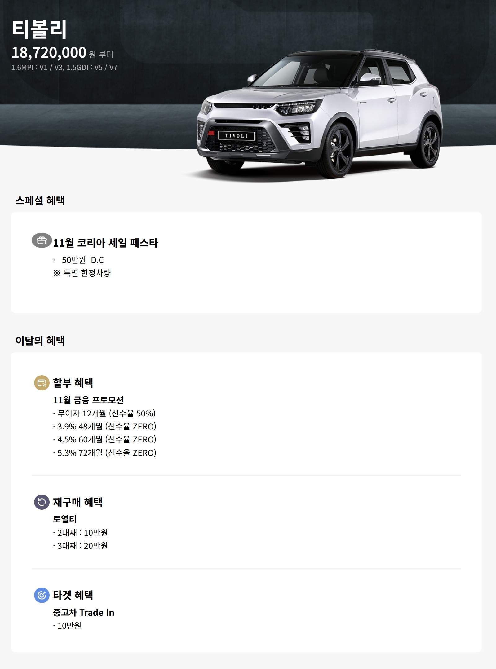 티볼리와 동일하게, 세일 페스타 할인 50만원 있습니다.