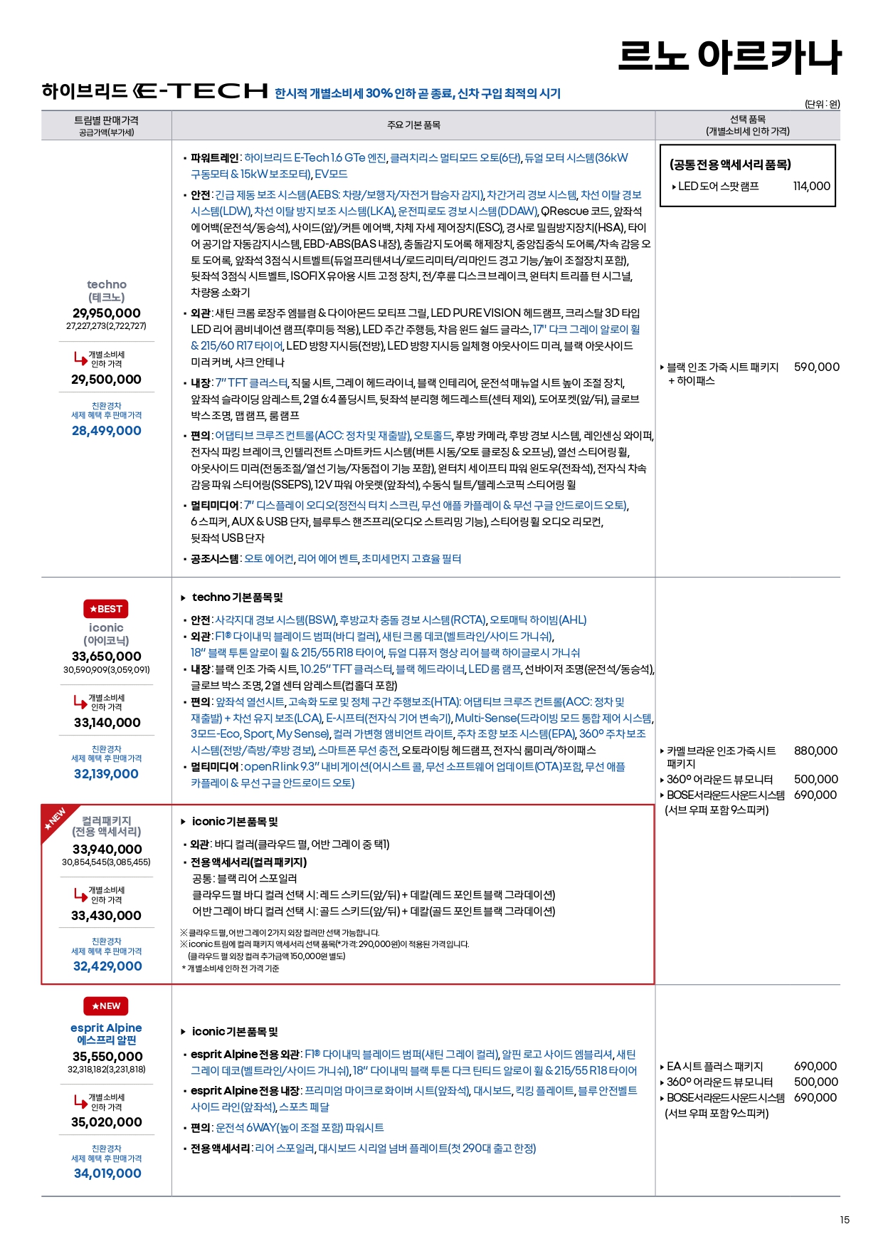 아르카나 할인 및 가격표
