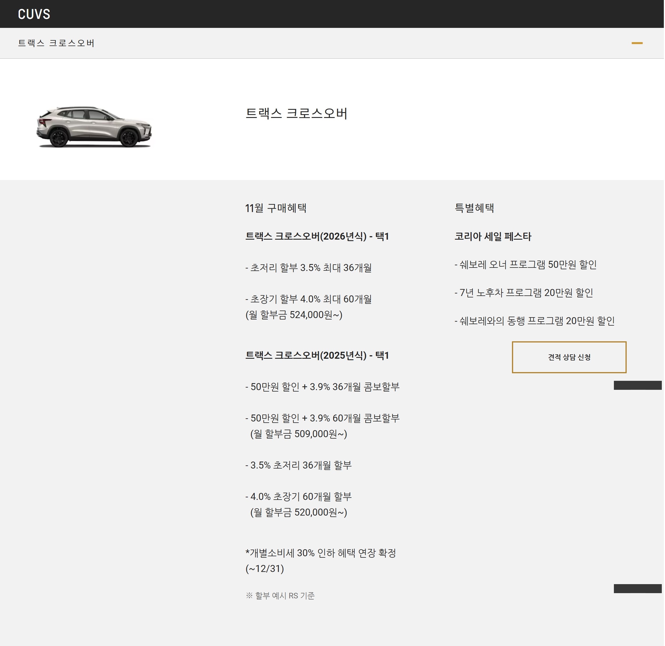 세일 페스타 혜택은 트랙스와 동일합니다.