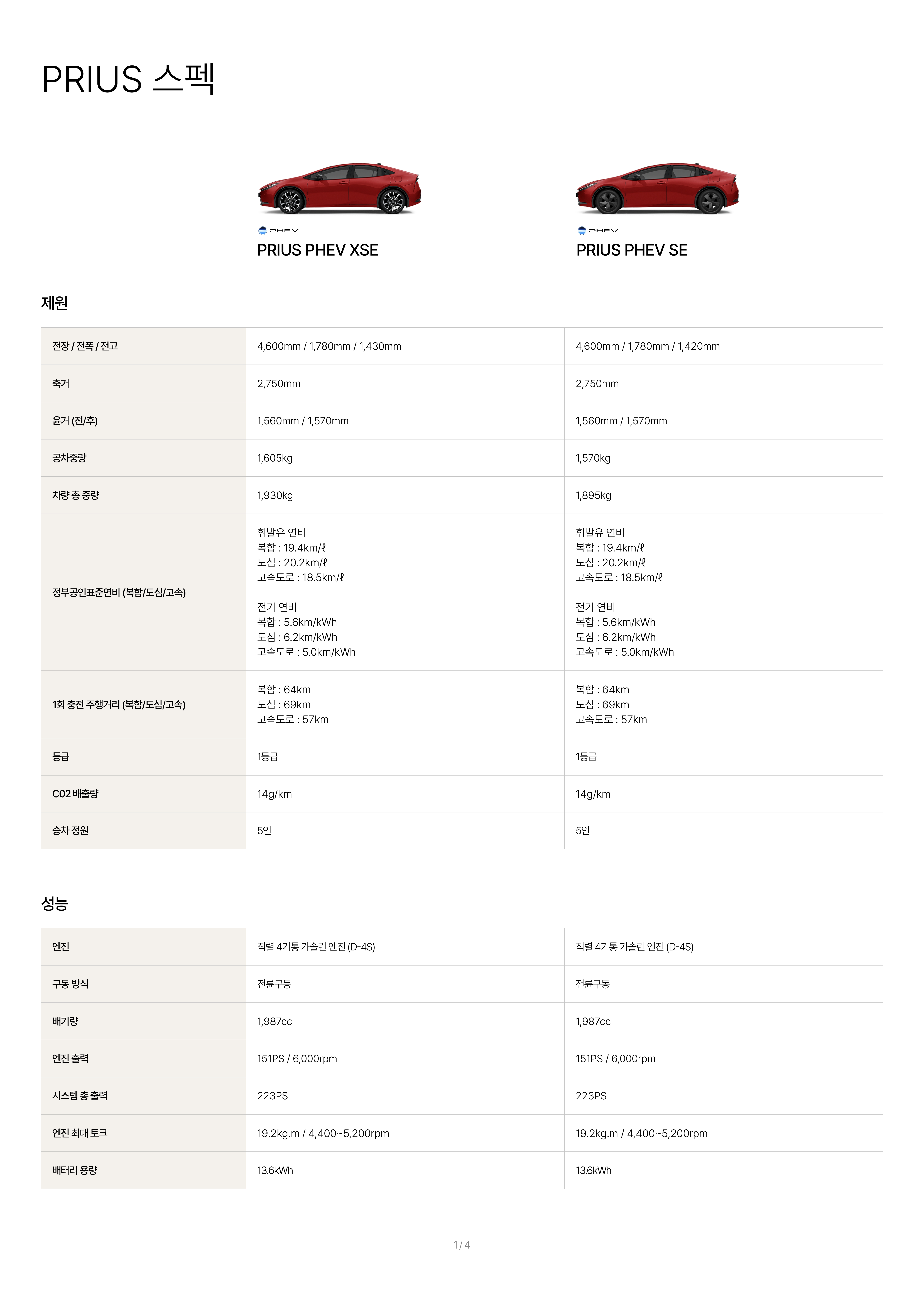 2026 프리우스 PHEV SE : 4,603 만원 (+43)
