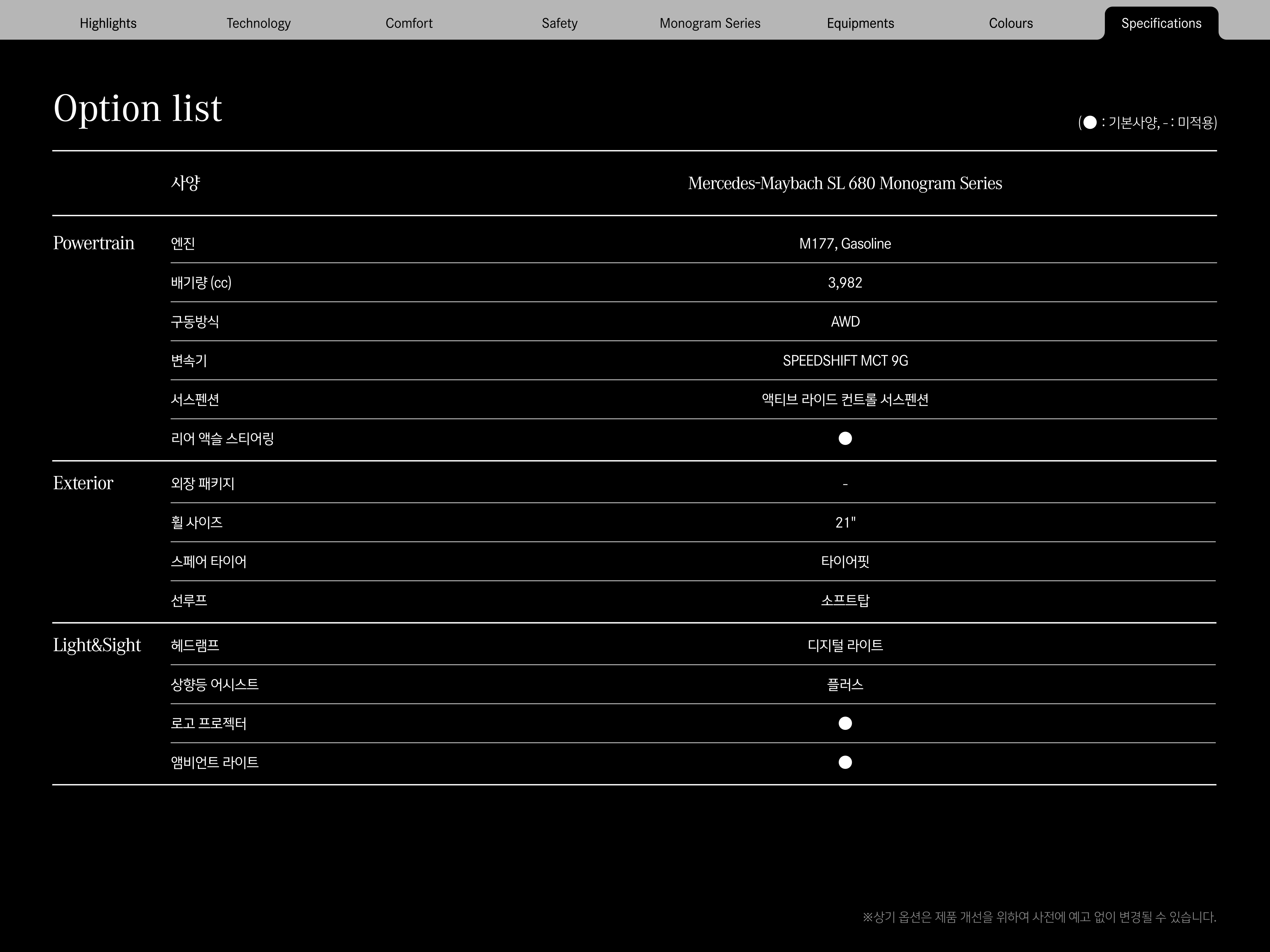 ▼ 2026 벤츠 마이바흐 SL 옵션표 ▼