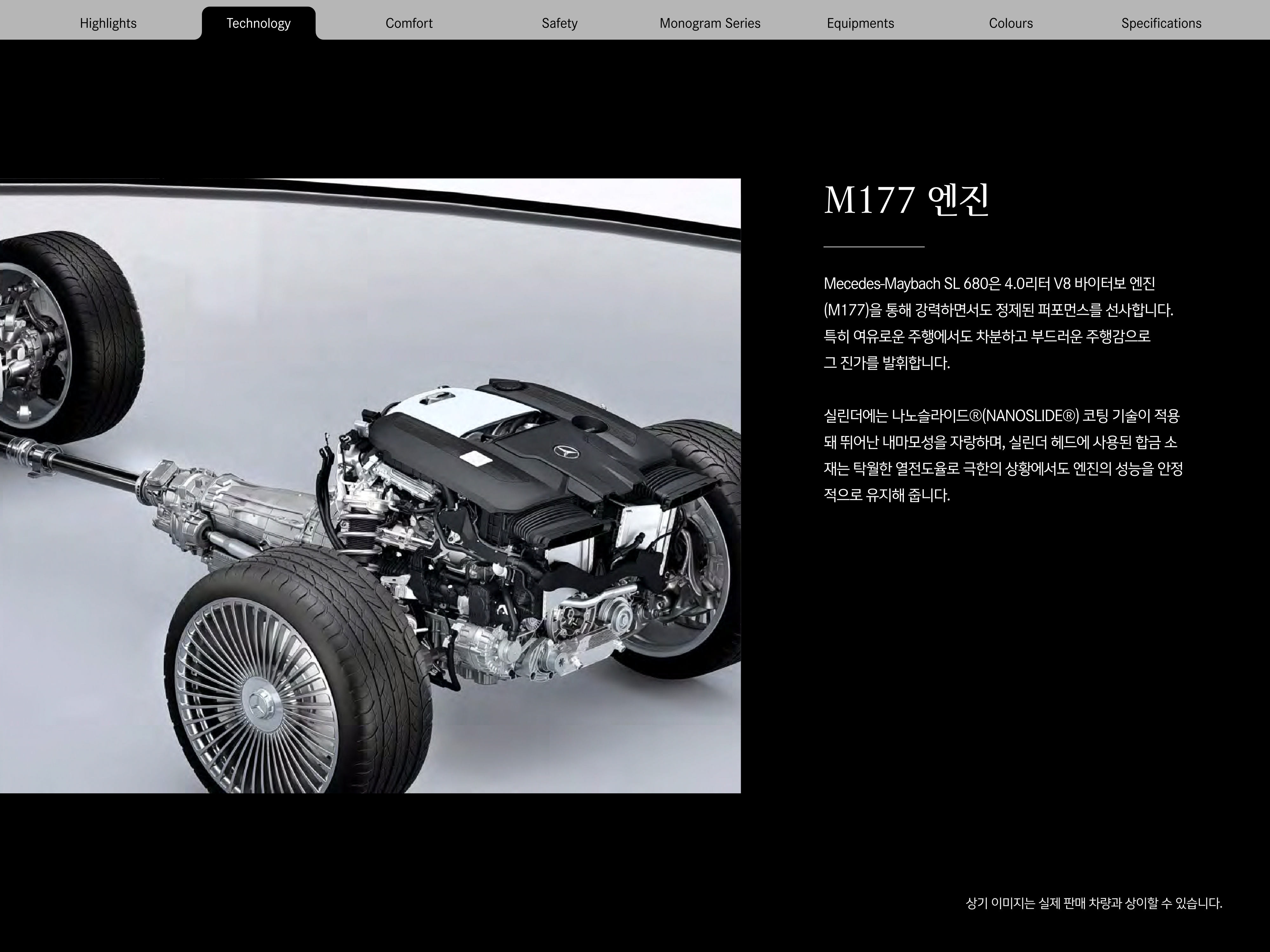 사실, 680이라는 네이밍만 보면, 12기통 엔진을 쓰지는 않았을까? 내심 기대를 해 볼 수도 있지만, 8기통 터보 엔진인 M177 엔진을 사용하고 있습니다.
