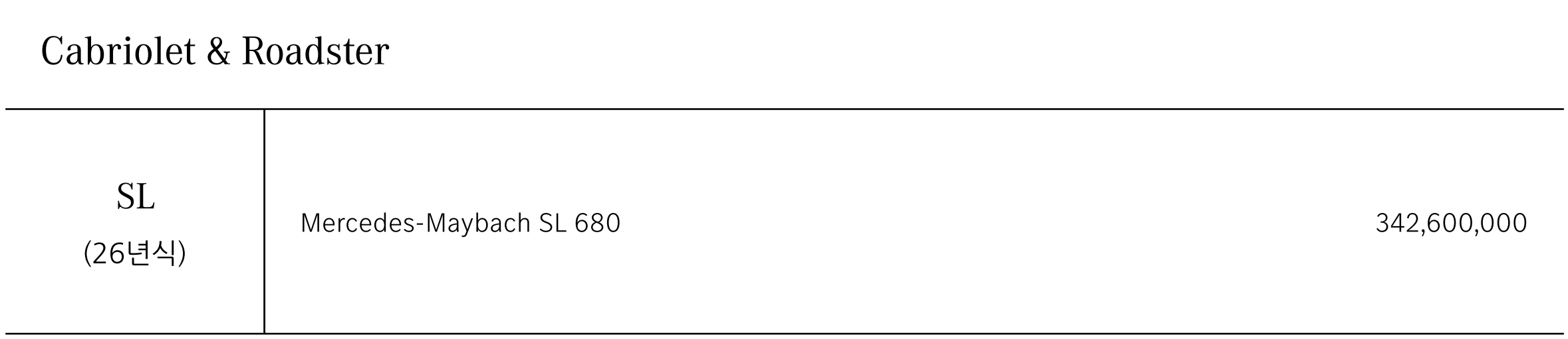 2026 벤츠 마이바흐 SL680 : 3억 4,260 만원