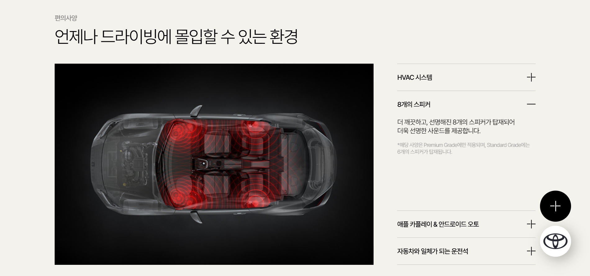 스탠다드는 6스피커, 프리미엄은 8스피커 입니다.