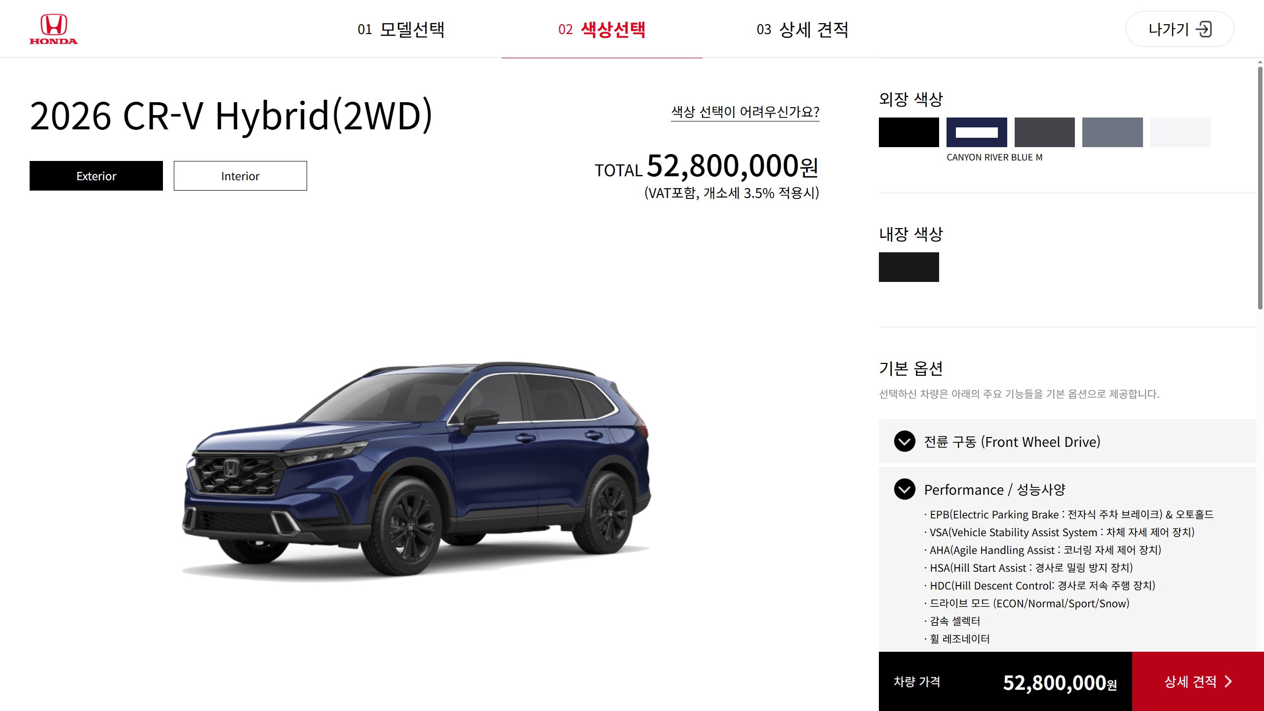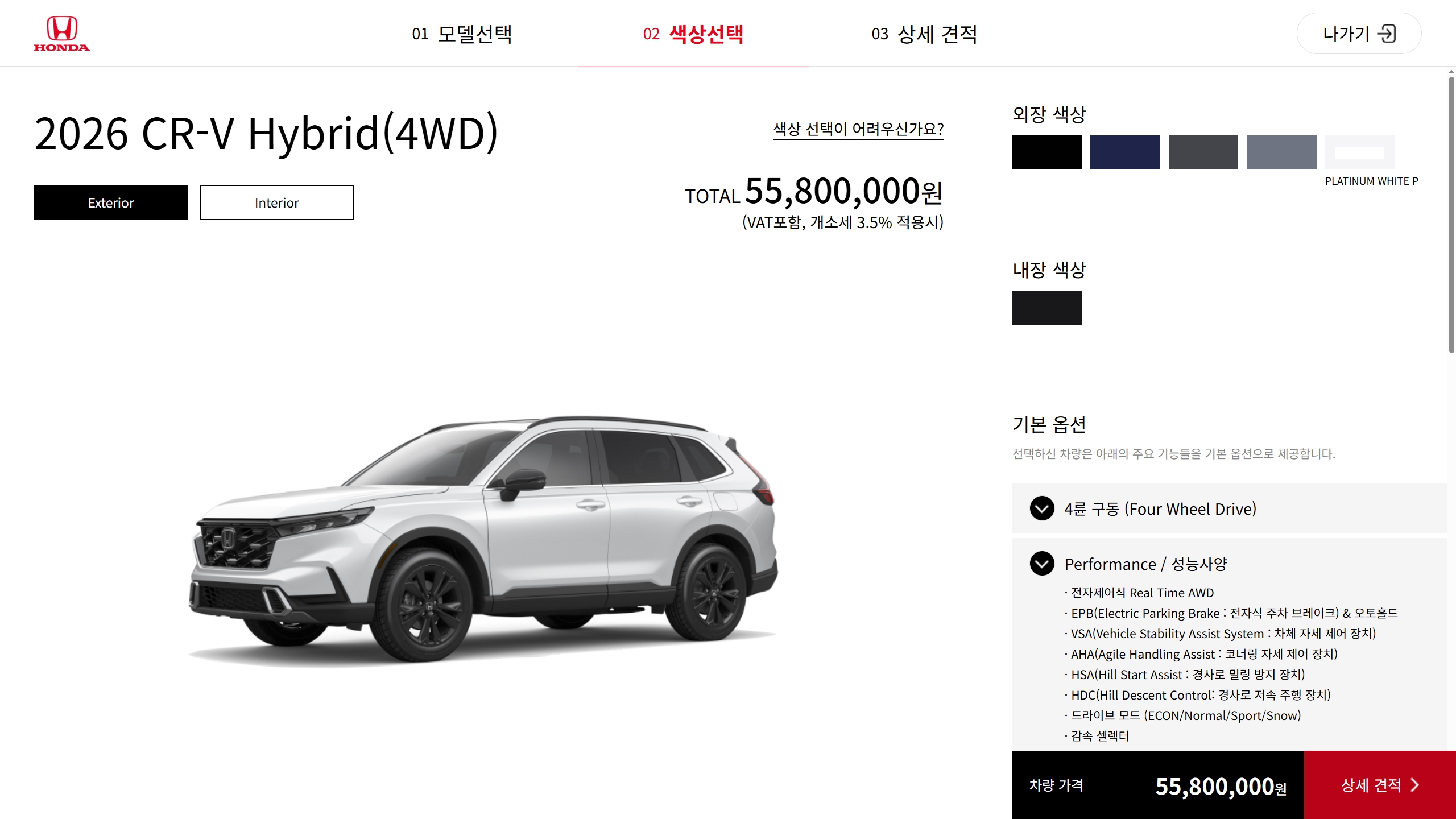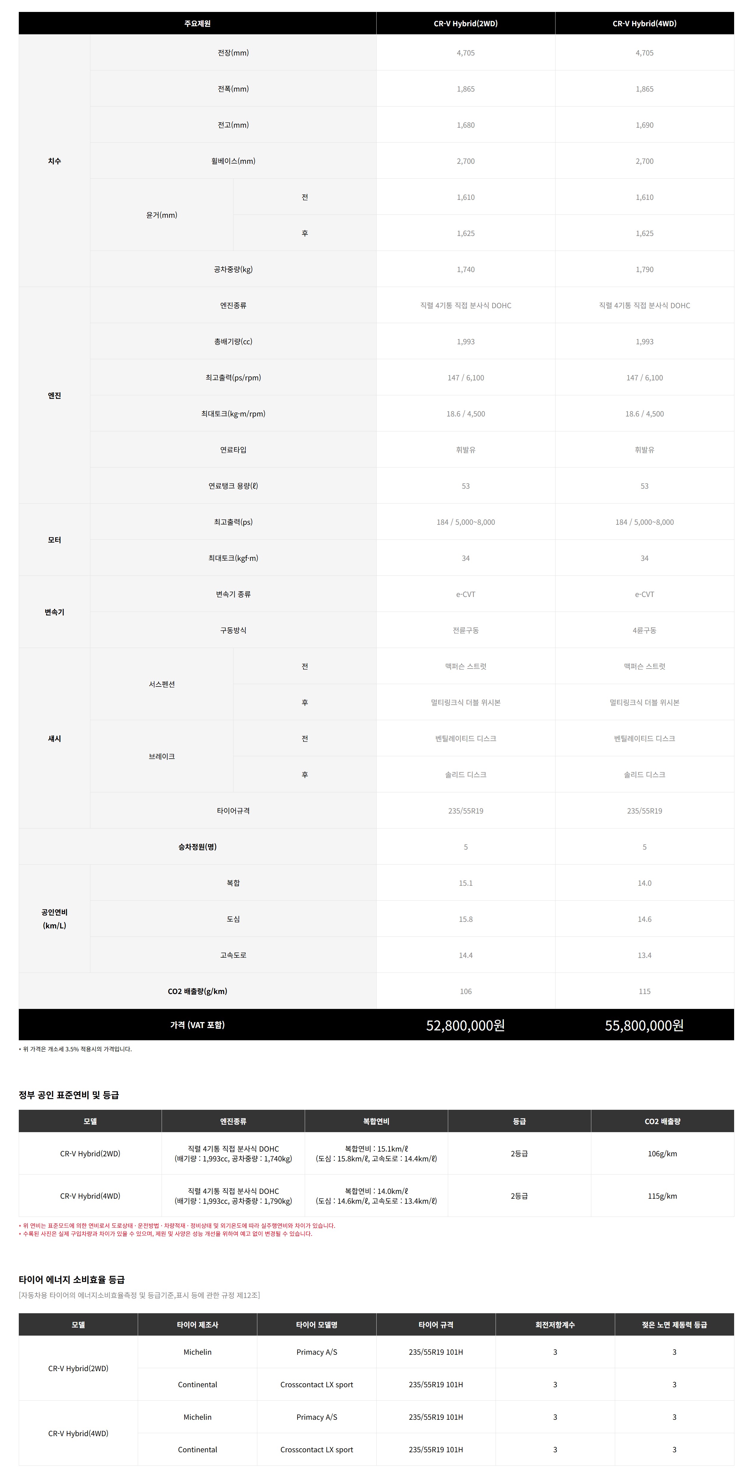 2026 CR-V 하이브리드 4WD : 5,580 만원