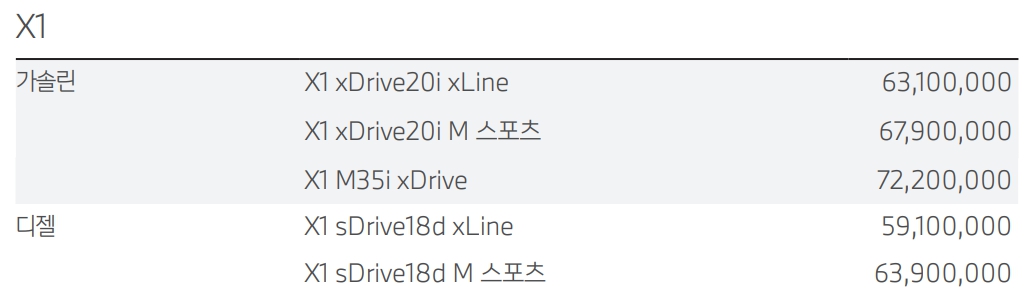 BMW X1 가격표