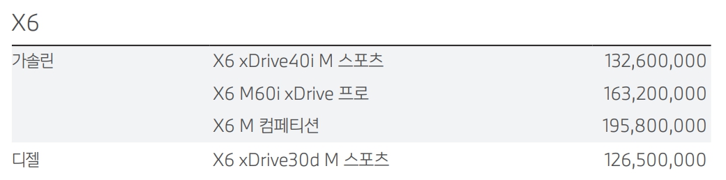BMW X6 가격표