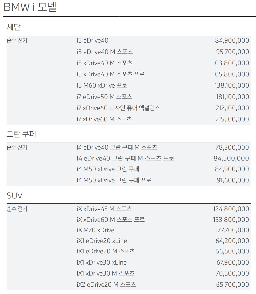 BMW 전기차 가격표