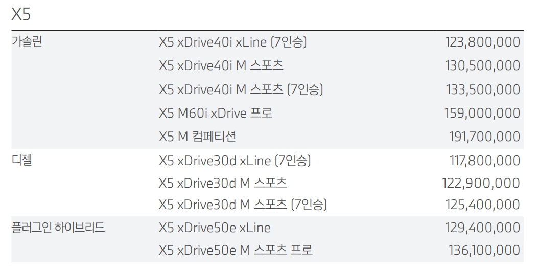 BMW X5 가격표