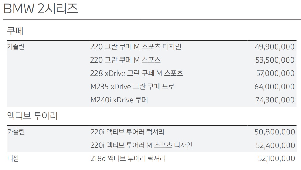 2시리즈 가격표