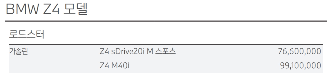 BMW Z4 가격표