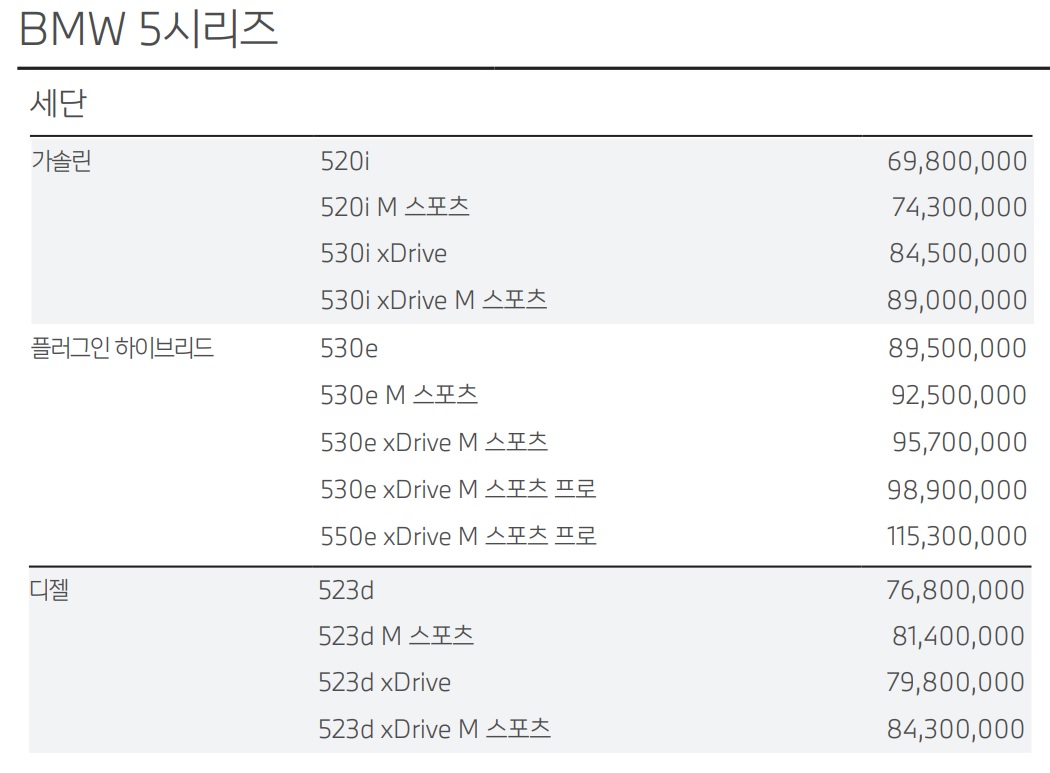 5시리즈 가격표