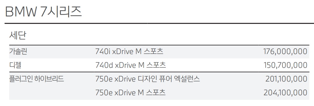 7시리즈 가격표
