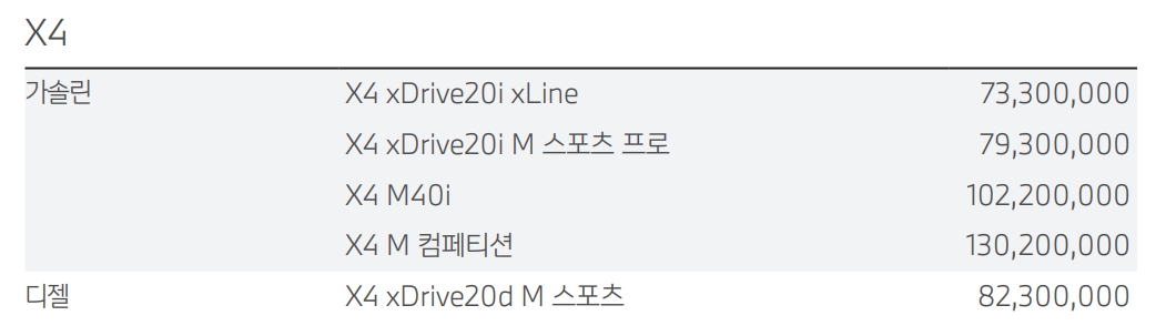 BMW X4 가격표