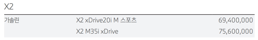 BMW X2 가격표