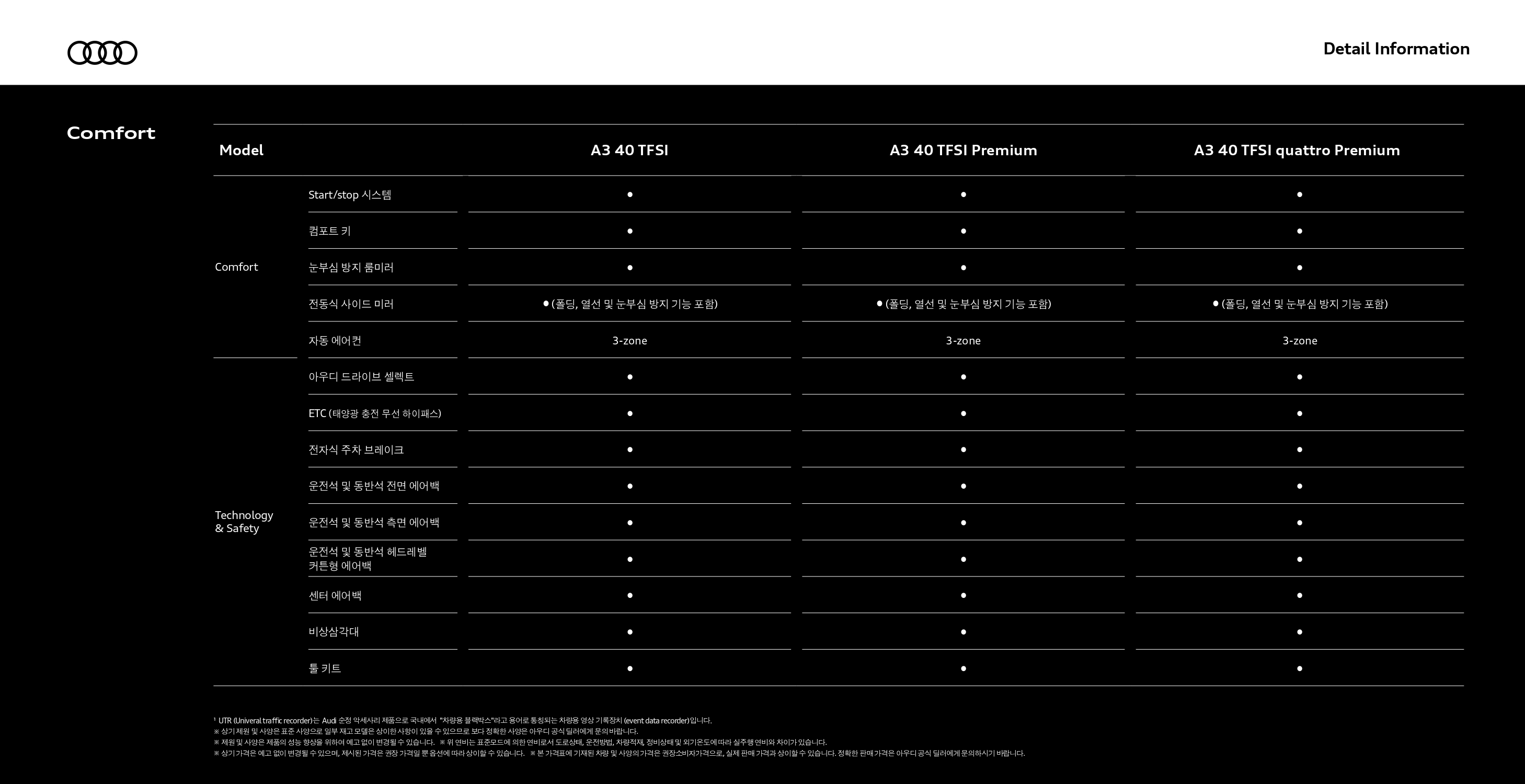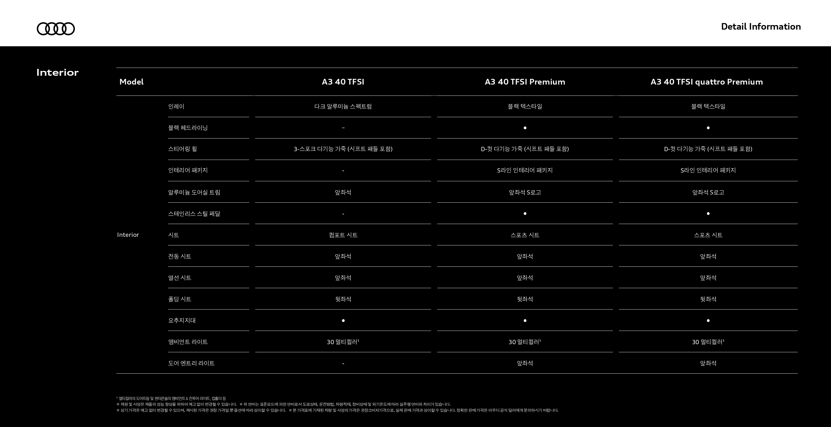 다음으로 기본형인 A3 40TFSI 컴포트 사양에만 해당되는 차이점인데요.
