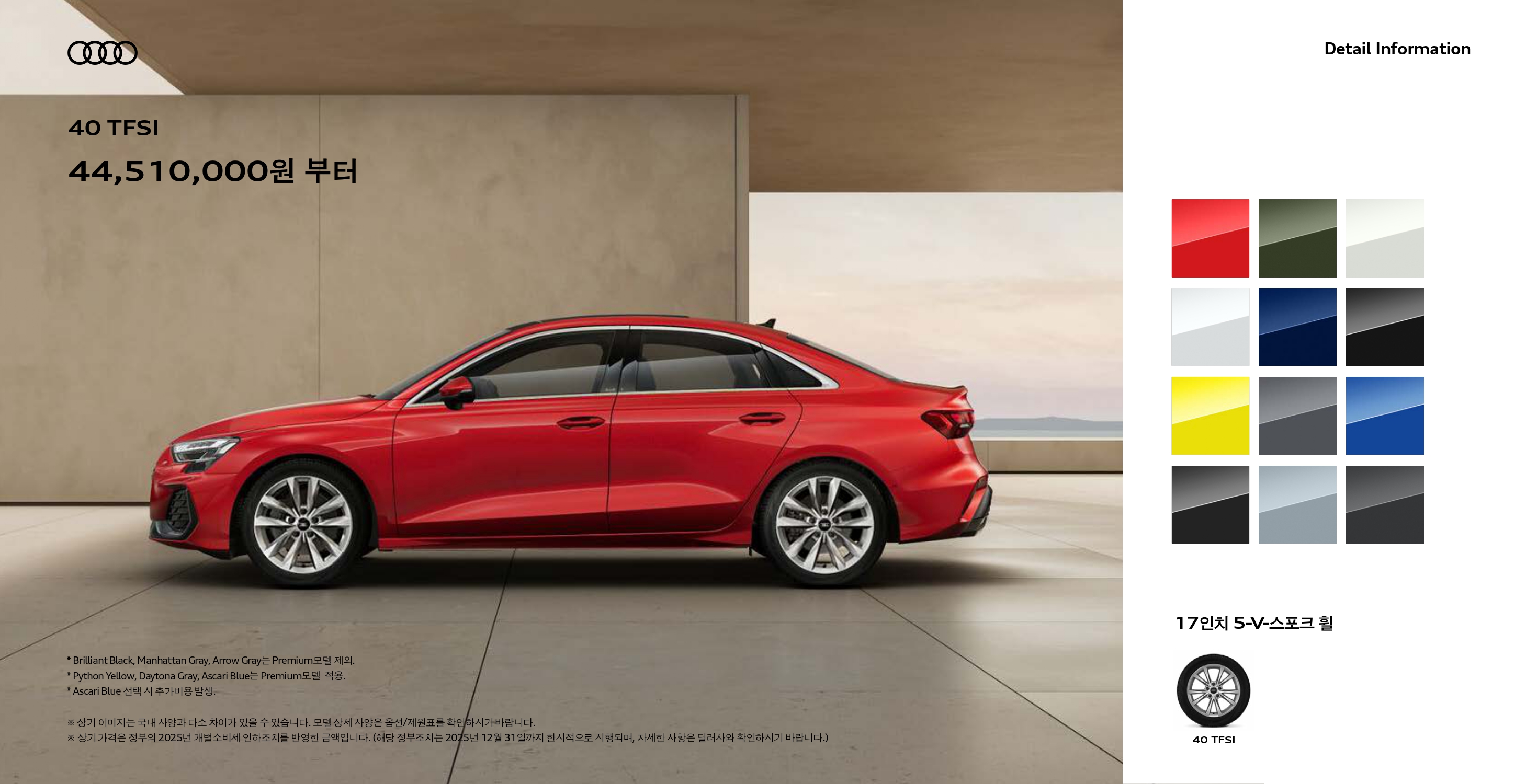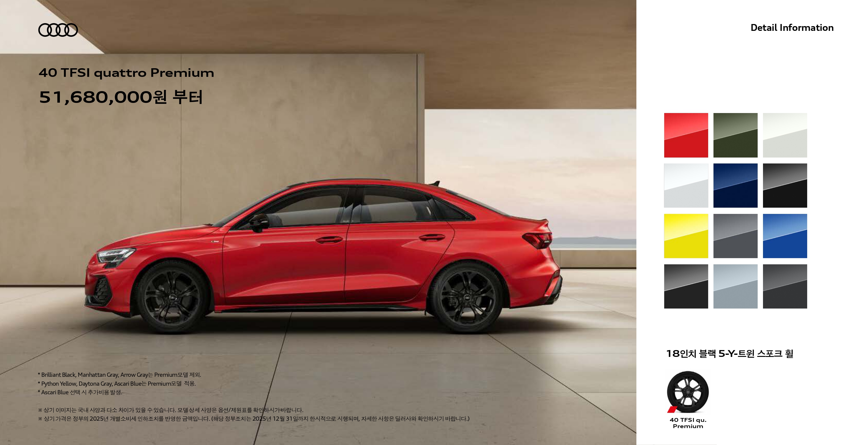 2026 A3 40TFSI 콰트로 프리미엄 : 5,168 만원