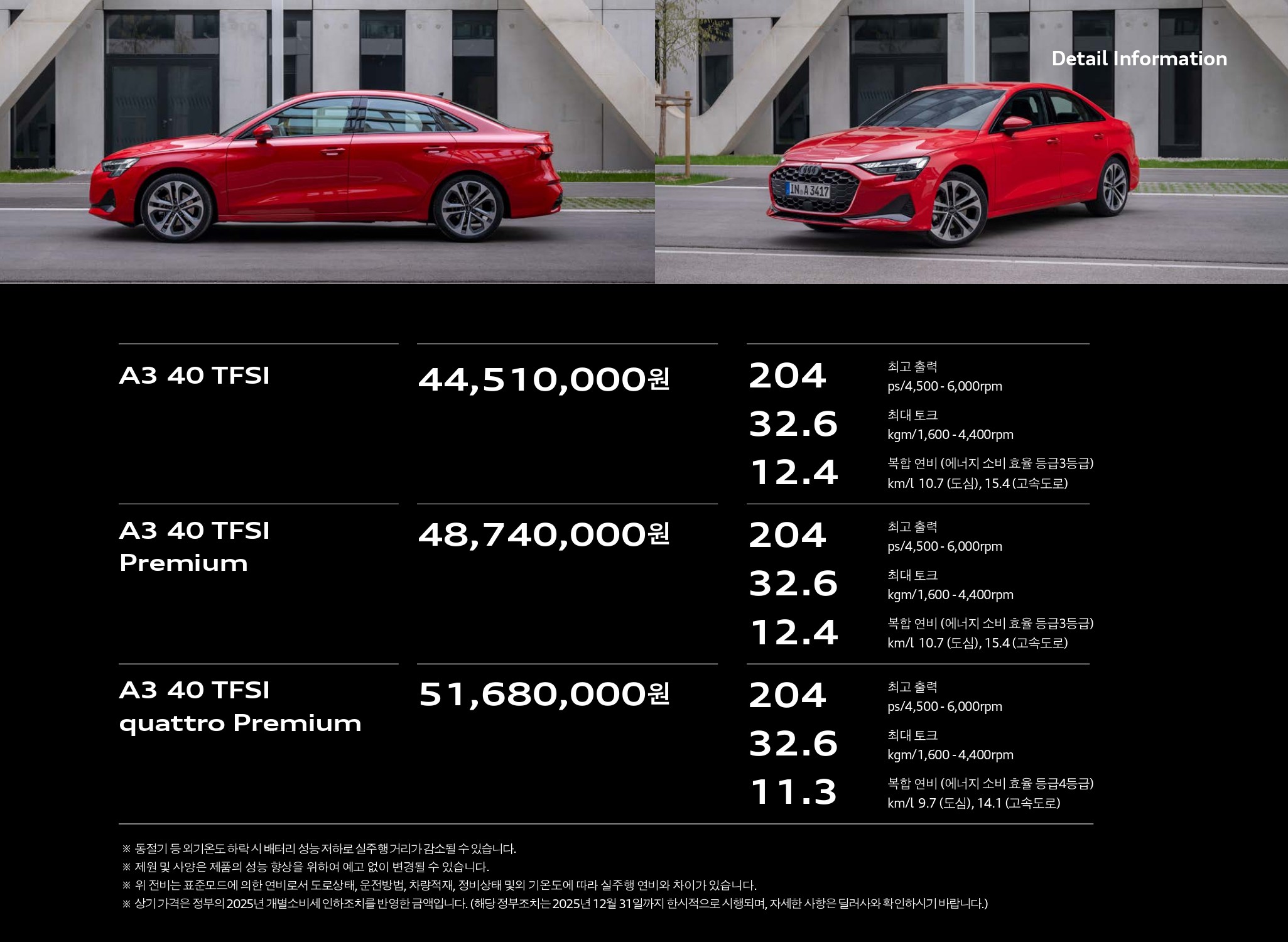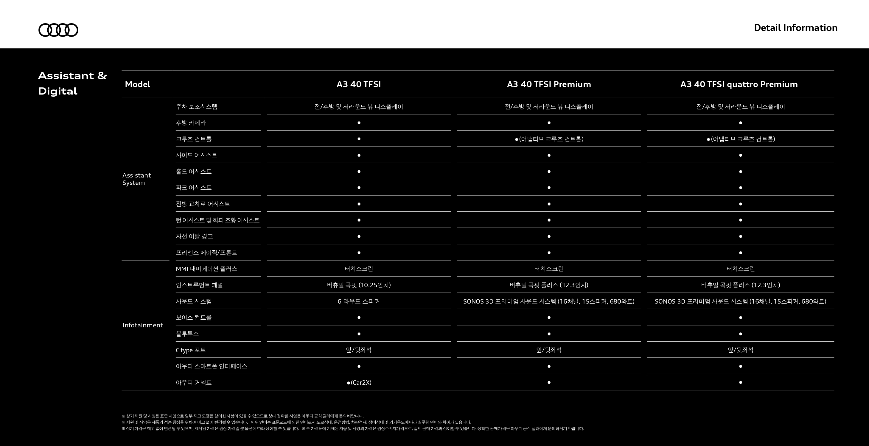 ▲ 2026 A3 프리미엄 / 2026 A3 콰트로 프리미엄 ▼
