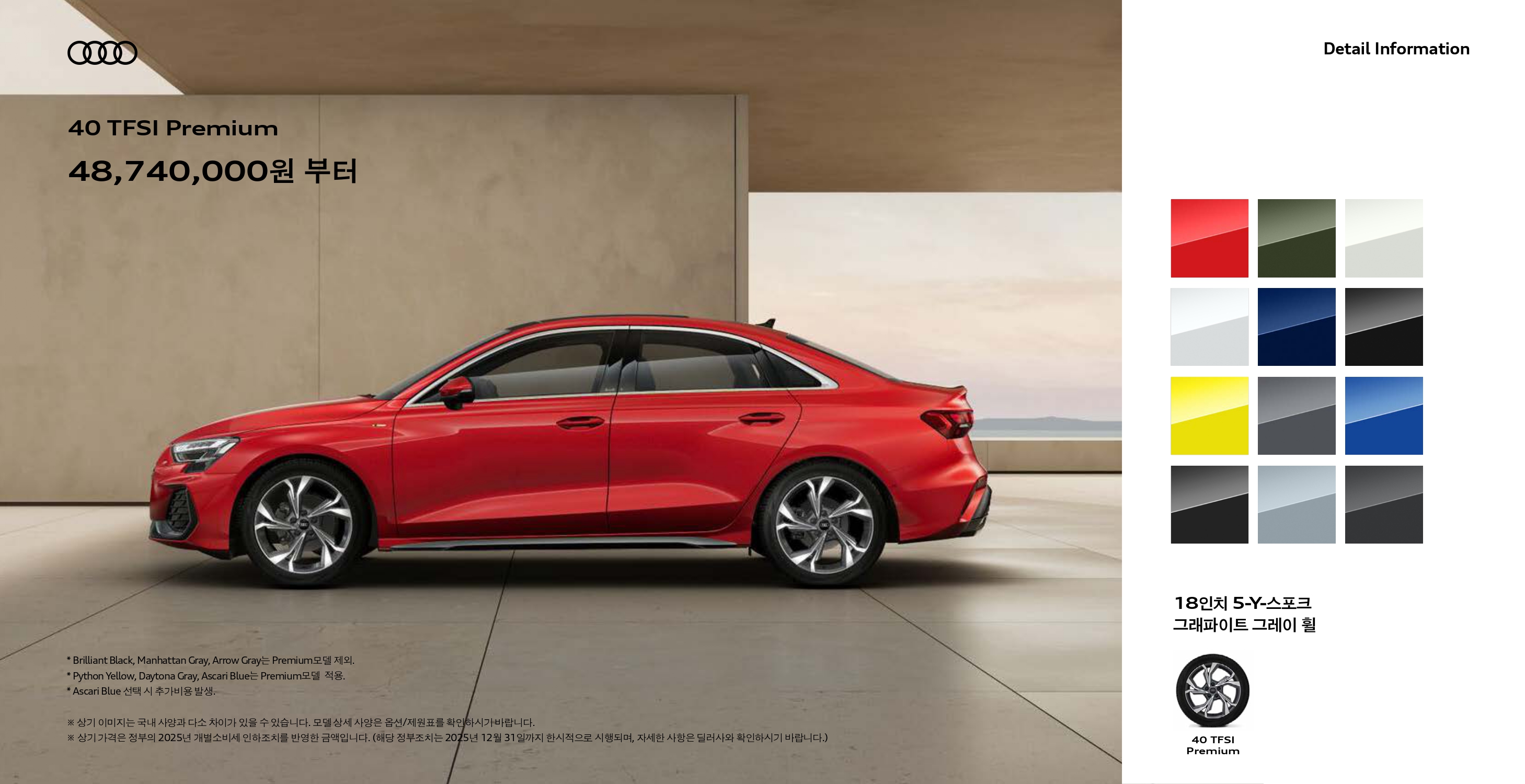 2026 A3 40TFSI 프리미엄 : 4,874 만원