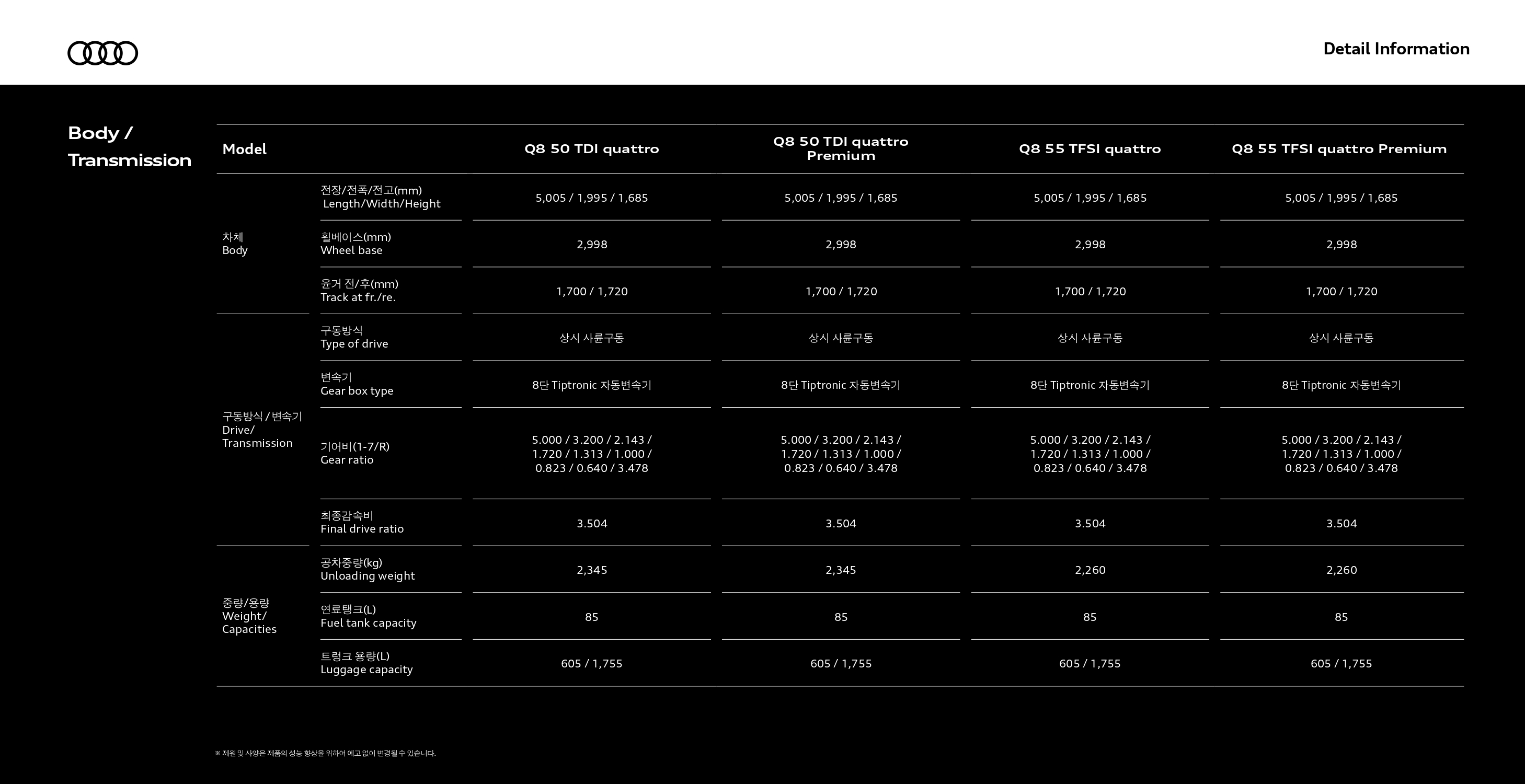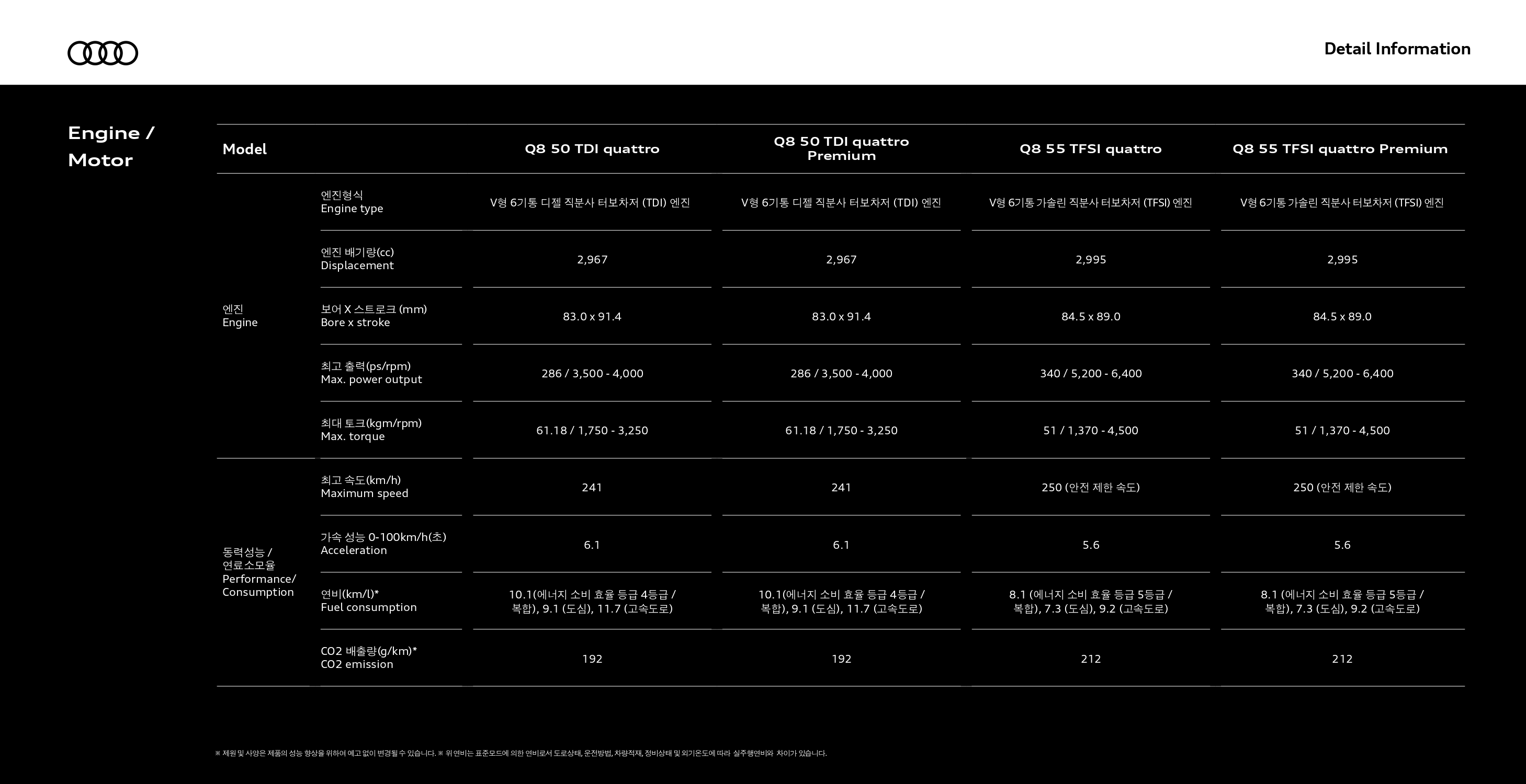 ▲ Q8 콰트로 컴포트 / Q8 콰트로 프리미엄 ▼