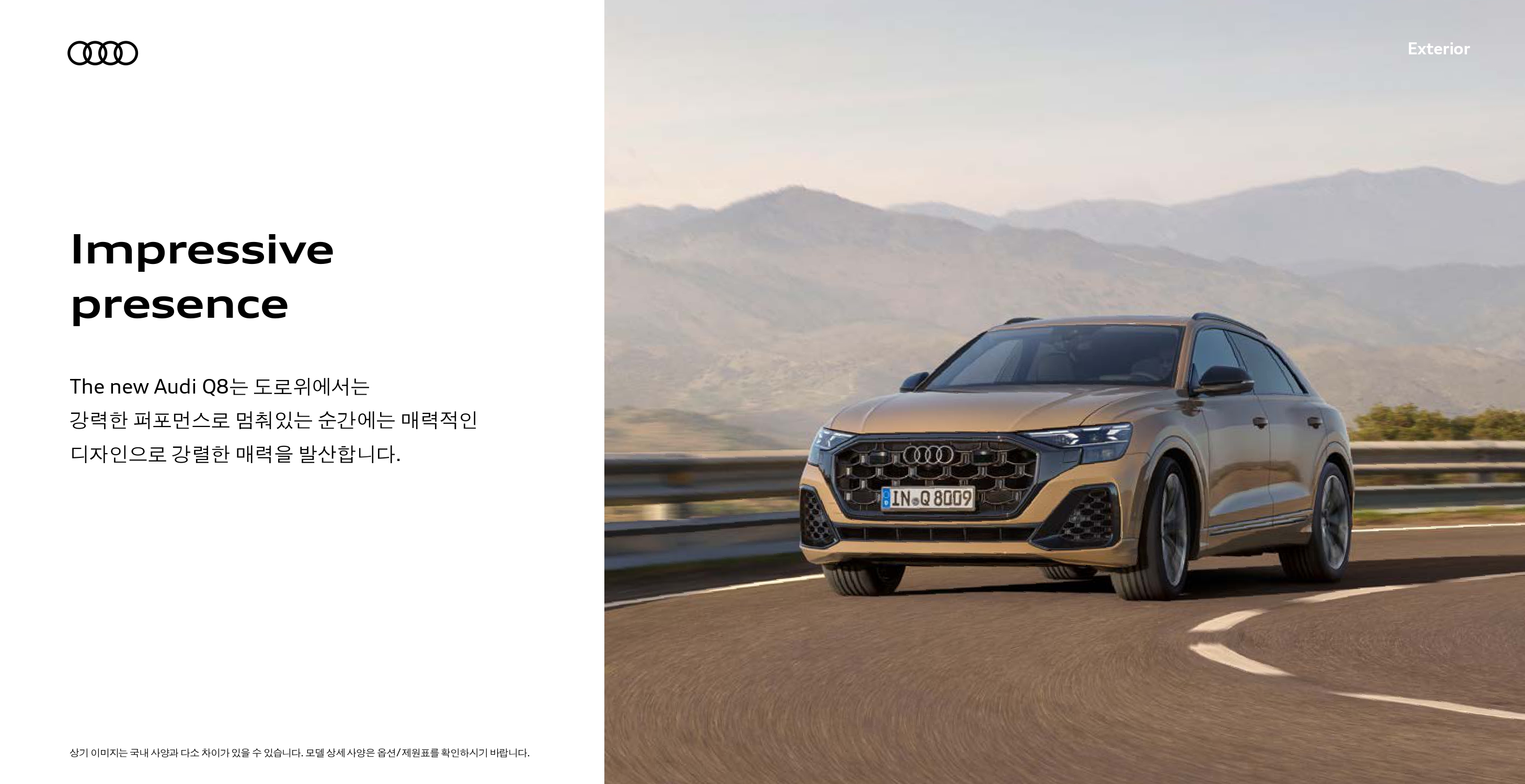 이번에 출시한 26년형 Q8의 경우, 기존에 판매된 25년형 Q8에서 변경된 부분은 없는 것 같고, 연식변경과 함께 가격만 조금 인상이 되었습니다.