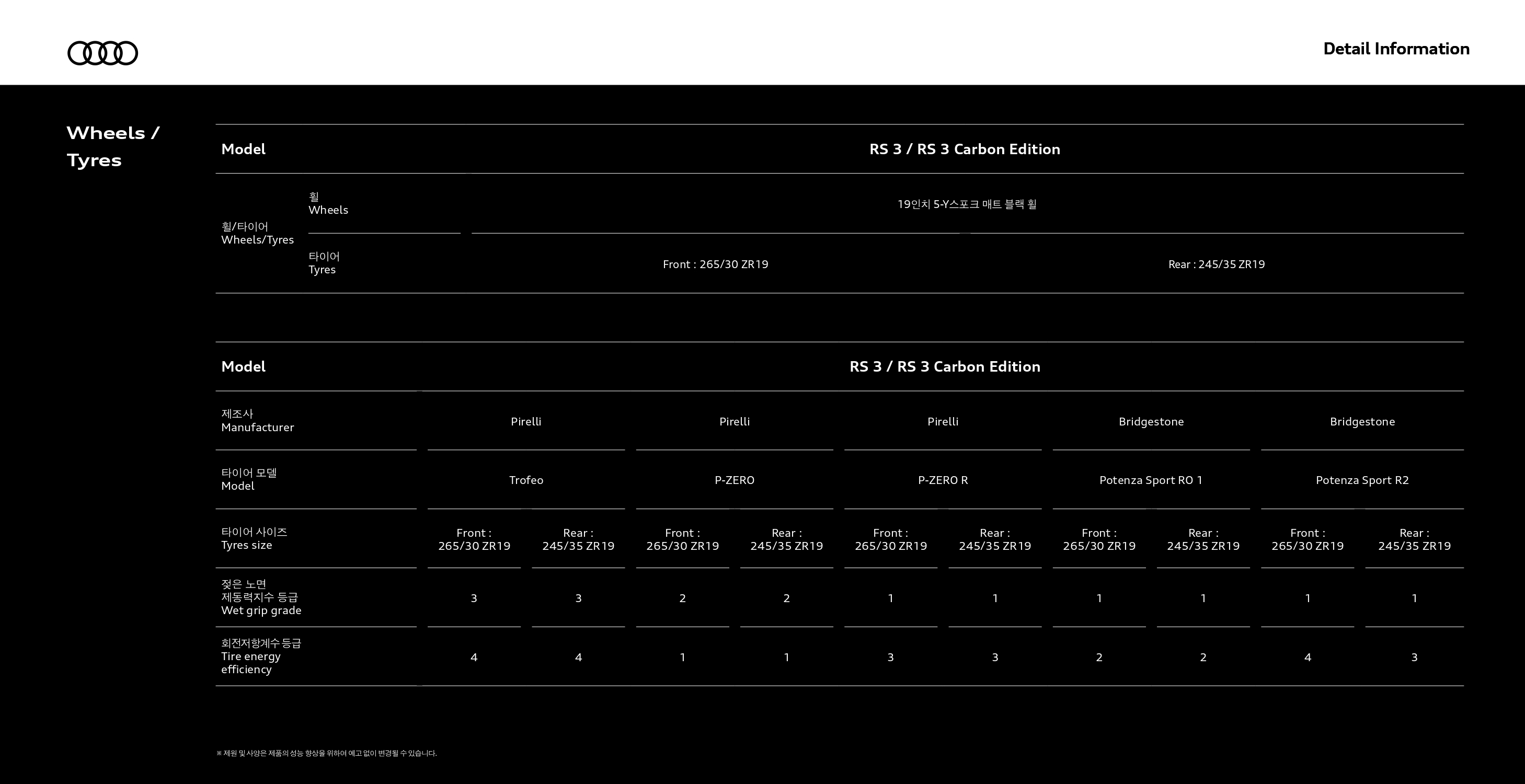 RS3 일반형 모델과 RS3 카본 에디션의 가격 차이는 무려 501만원입니다.