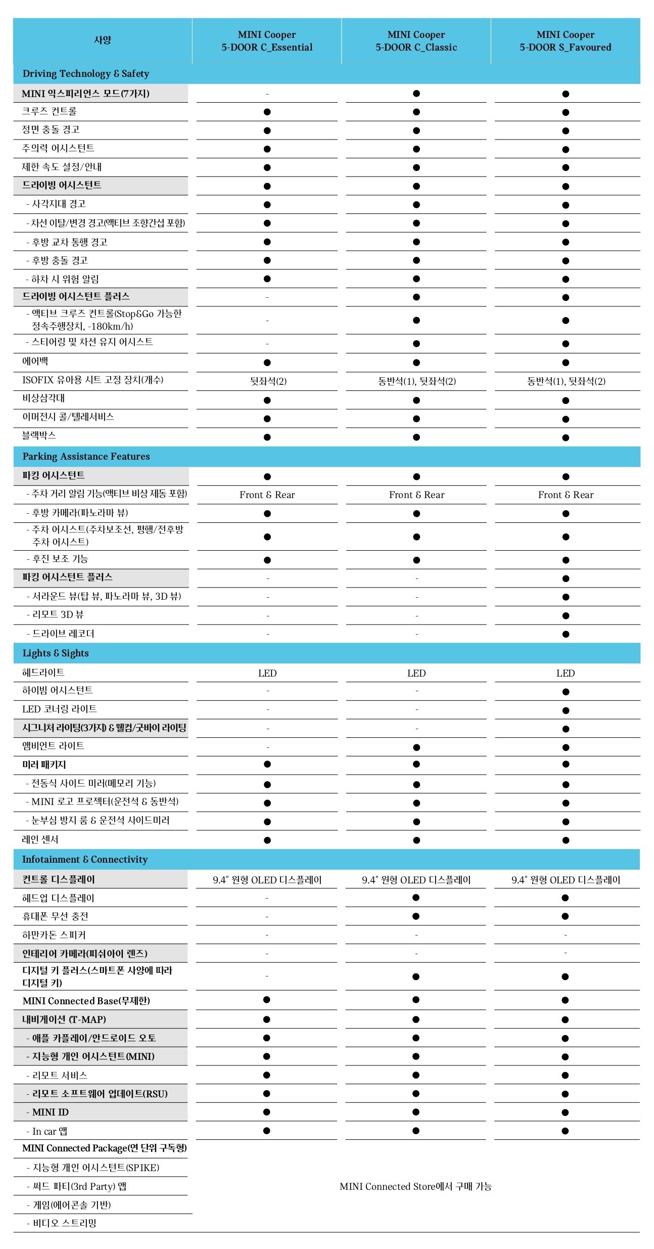 ▼ 2026 미니 쿠퍼 5도어 옵션표 ▼