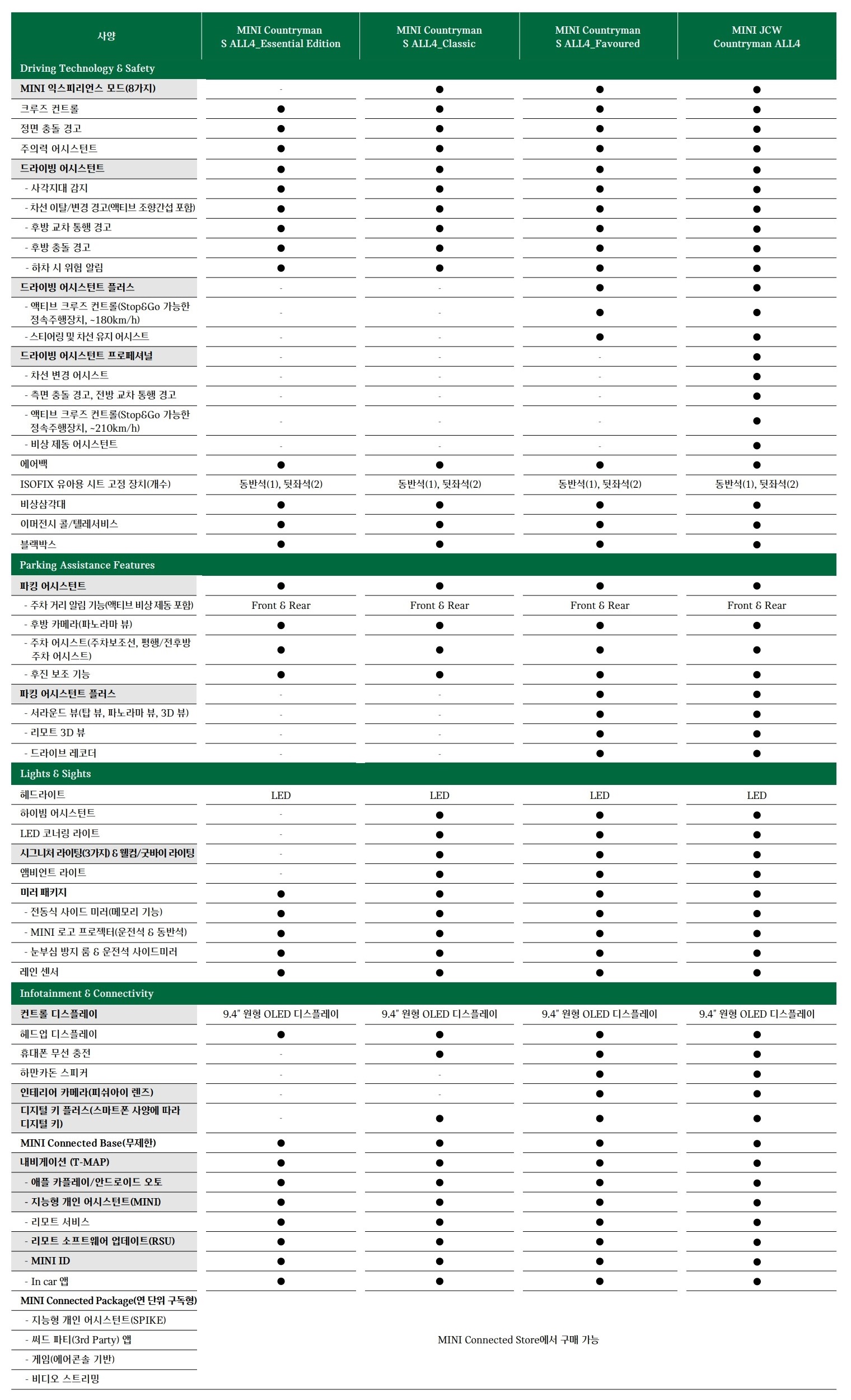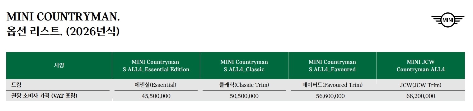 ▼ 2026 미니 컨트리맨 옵션 표 ▼