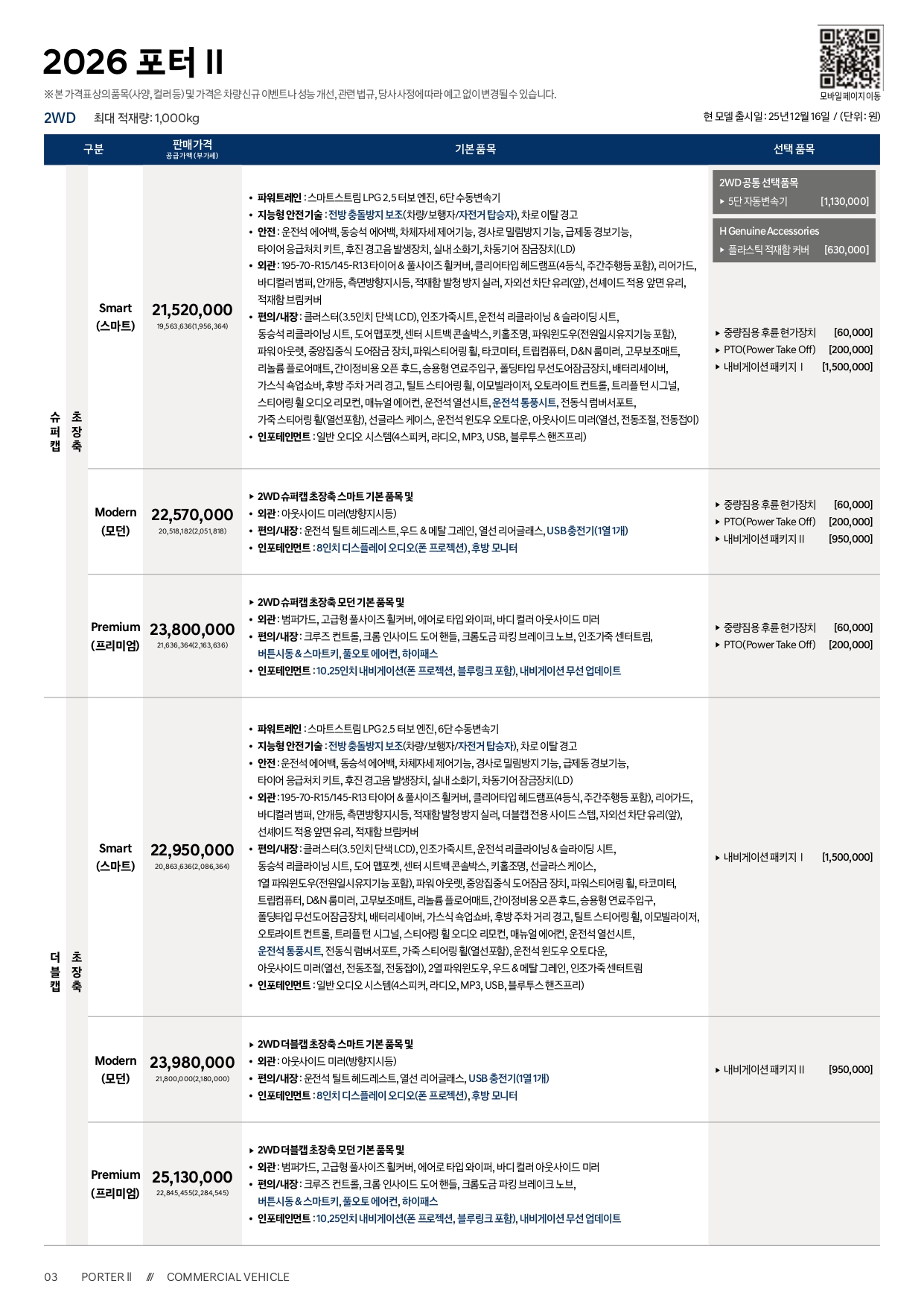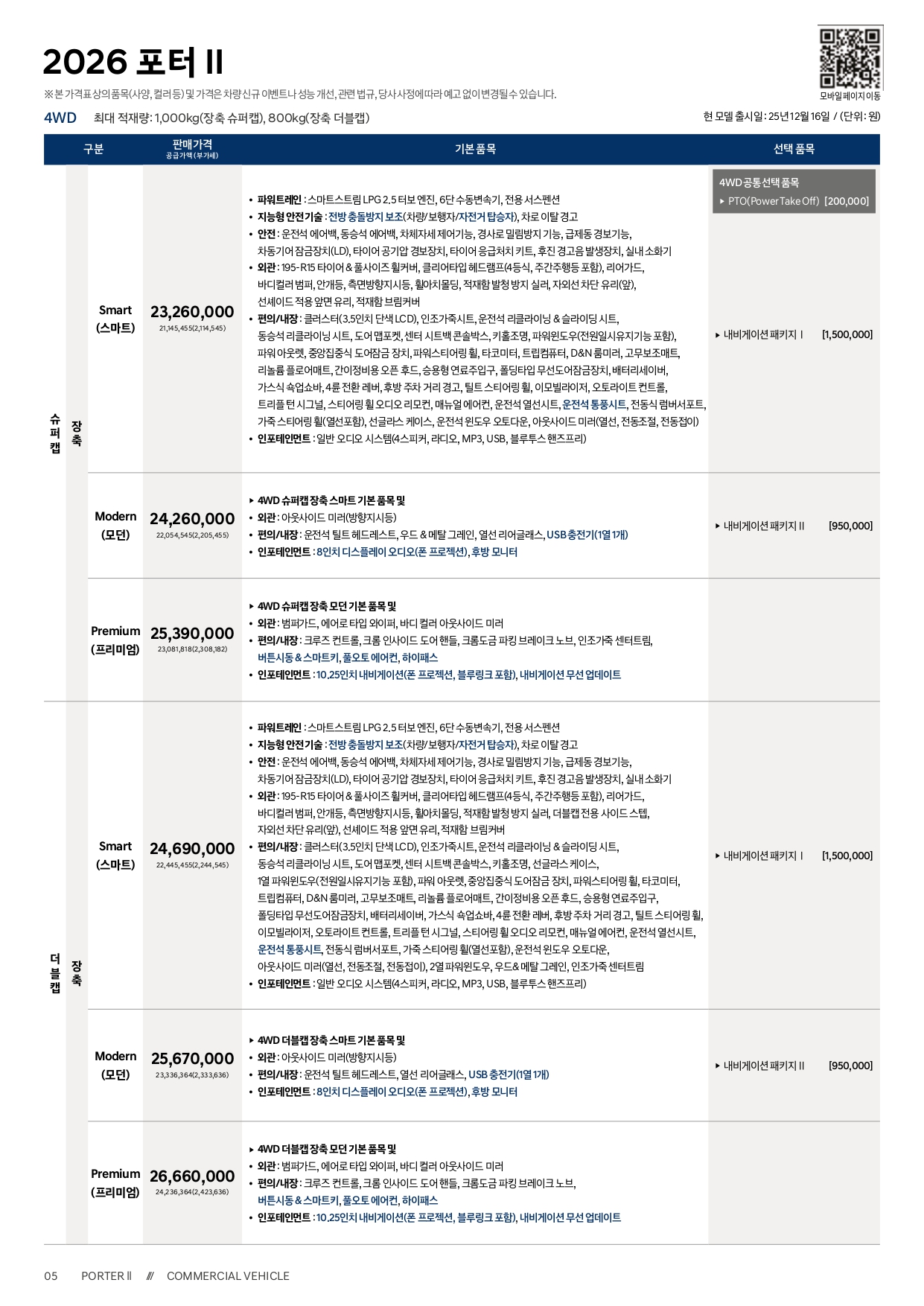 아래는 2026 포터 가격표 및 카탈로그 PDF 파일로, 필요하신 분께서는 받아 가시기 바랍니다.