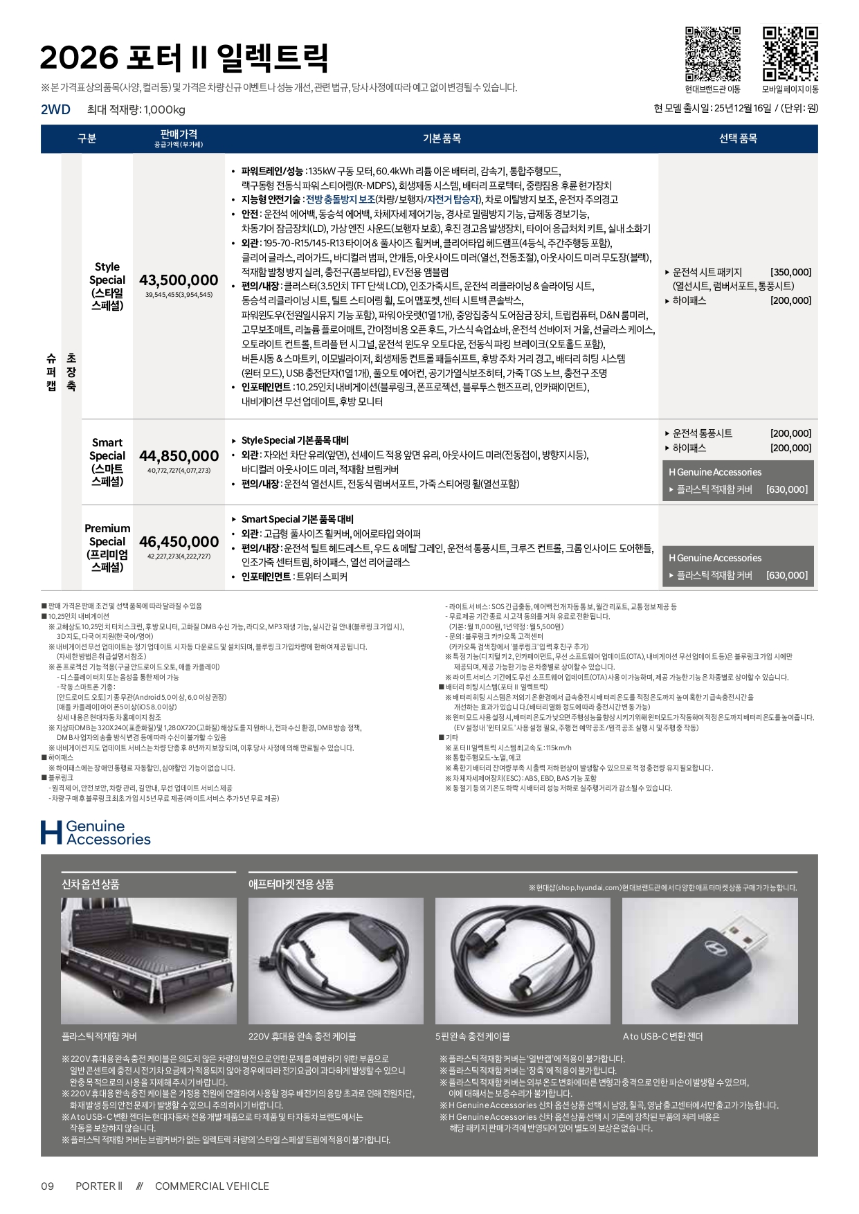 포터 일렉트릭의 경우, 성능을 일부 보강하면서, 25년형을 이미 출시해서 판매를 했기 때문에, 25년형 -> 26년형으로 변경이 되었습니다.