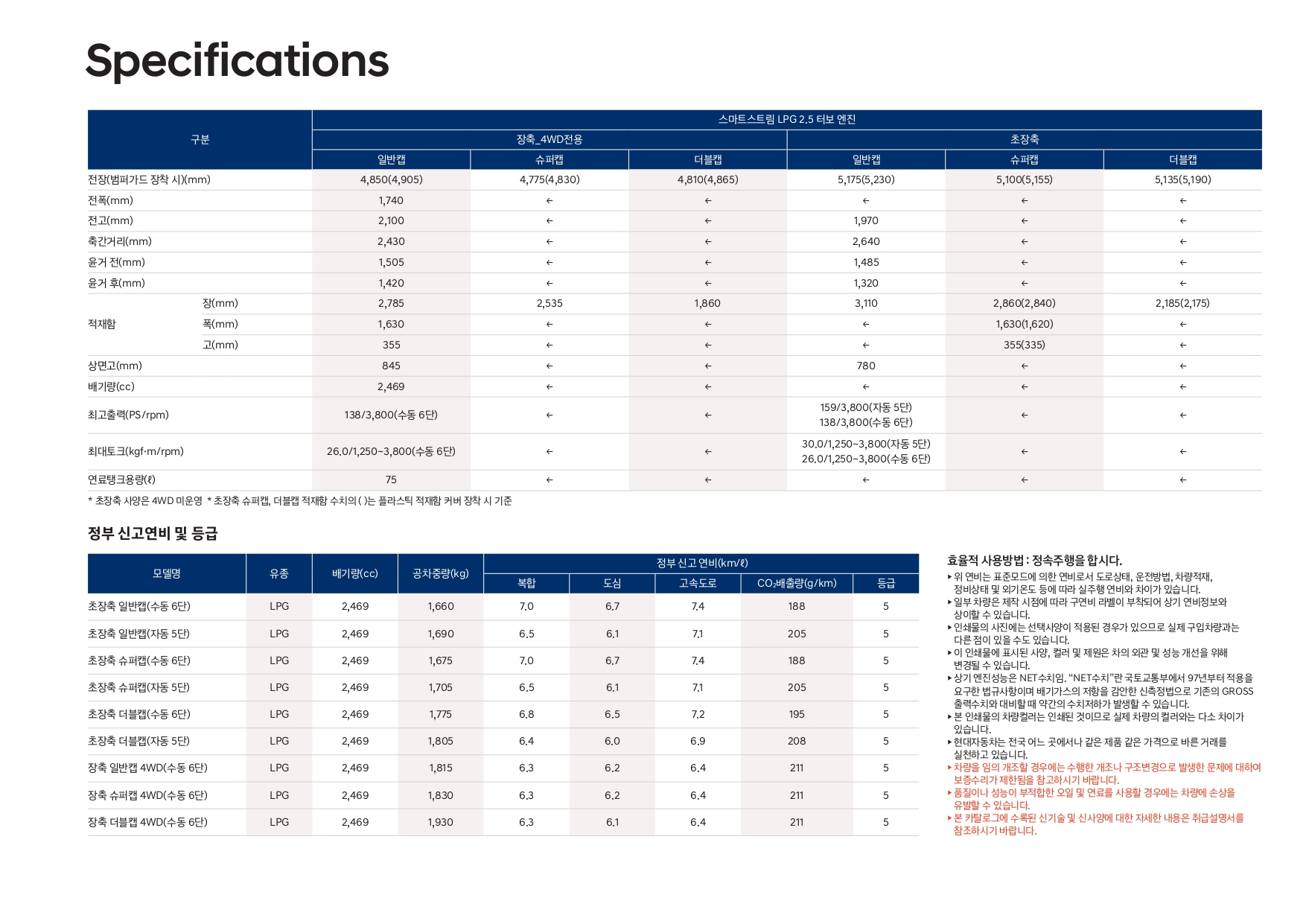 ▼ 2026 포터 제원 ▼