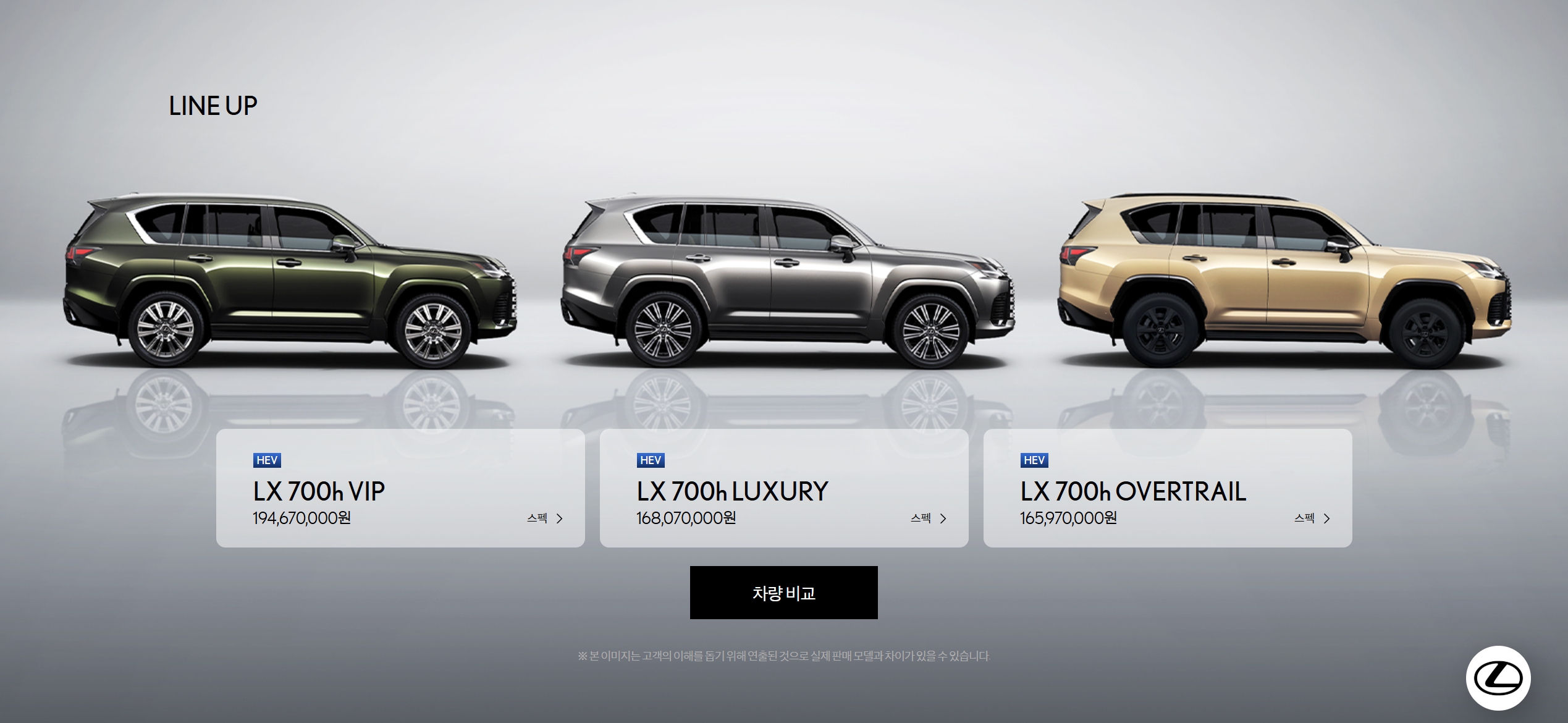 2026 렉서스 LX700h VIP : 1억 9,467 만원