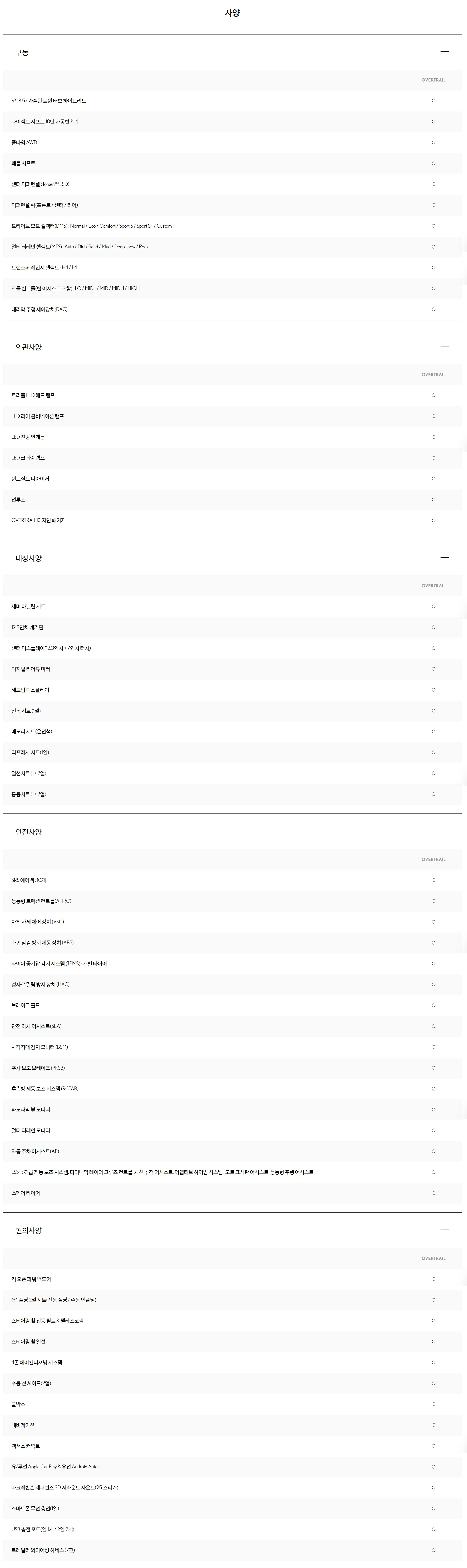 오버트레일 트림의 경우, 앞서 말씀드린 것과 같이 오프로드 특화 트림이기 때문에,