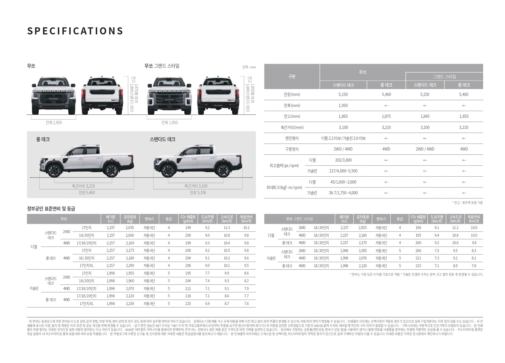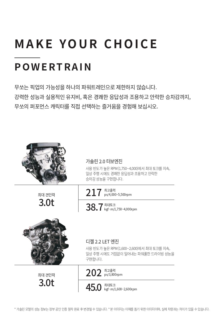 예전보다 조금 더 복잡하기는 한데, 아무래도 가솔린/디젤 + 2WD/4WD + 스탠다드/롱데크 등 다양한 선택지 조합이 있어 복잡해 졌습니다.