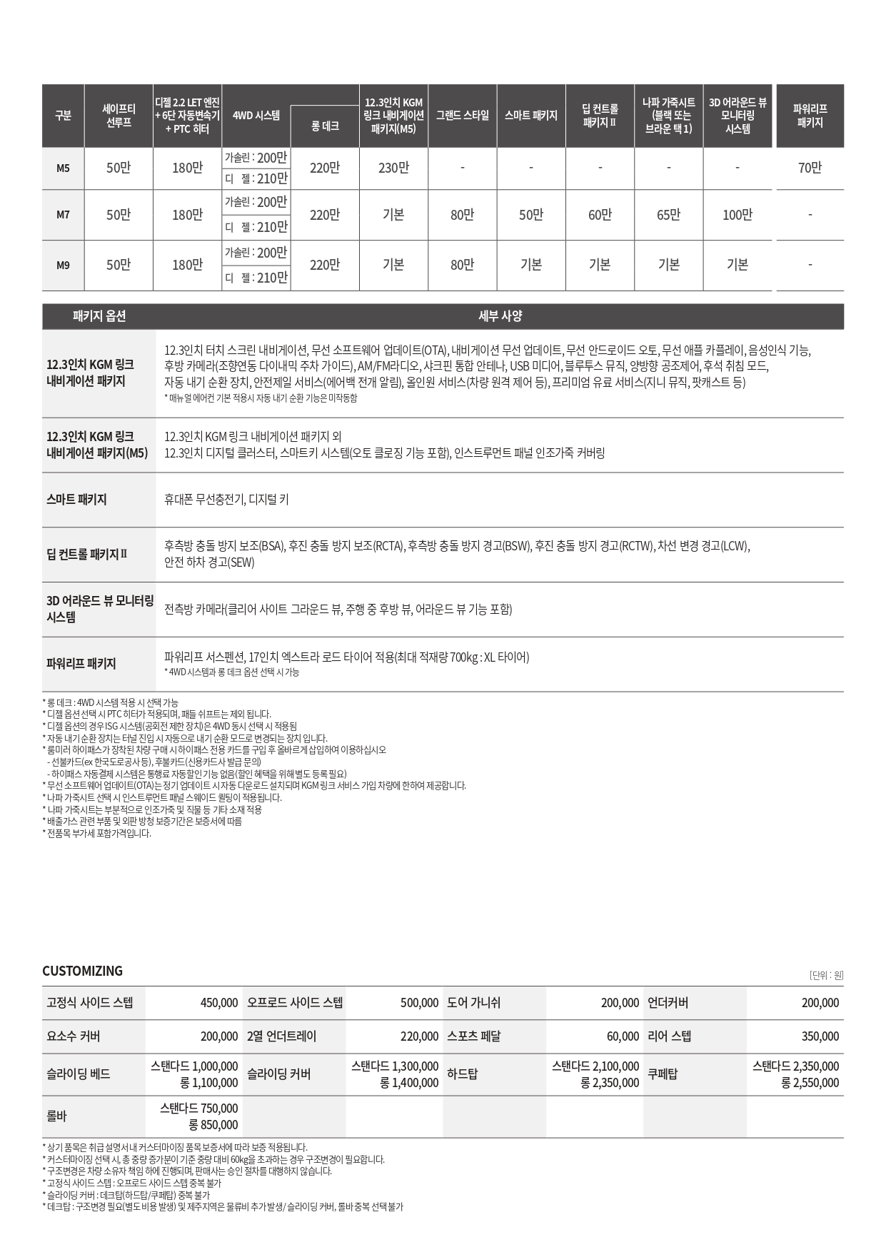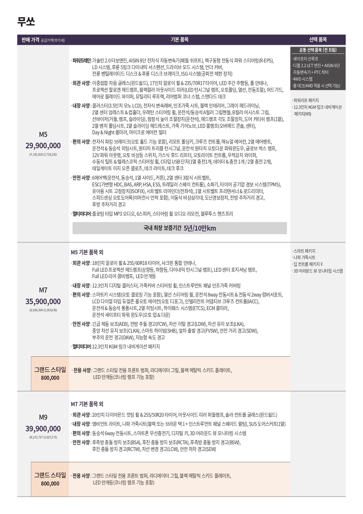 2026 무쏘 M9 : 3,990만원