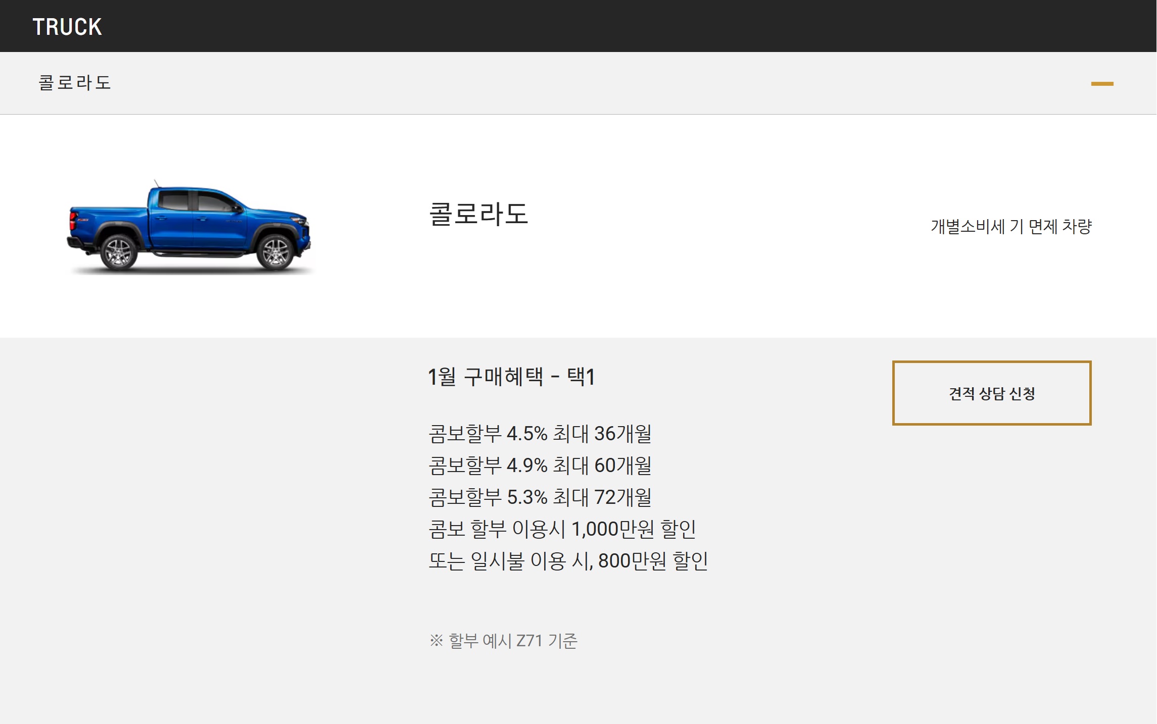 콜로라도 할인 및 가격표