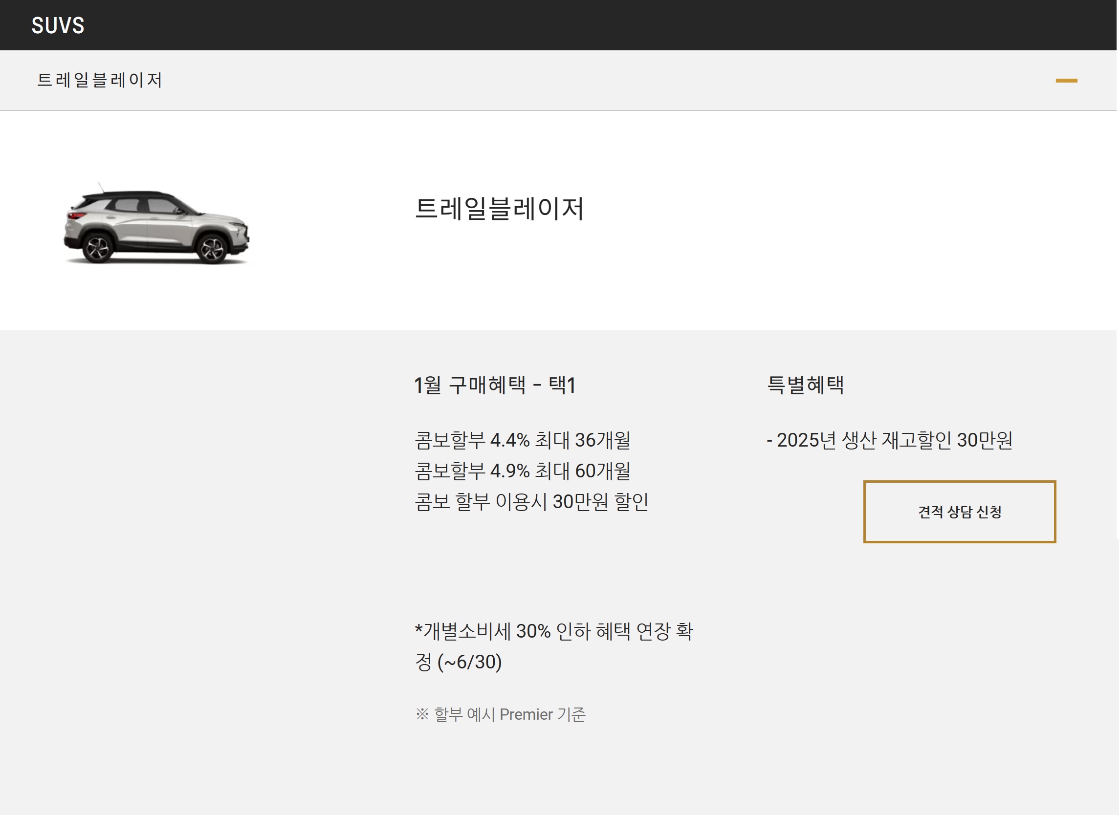 트레일블레이저 할인 및 가격표