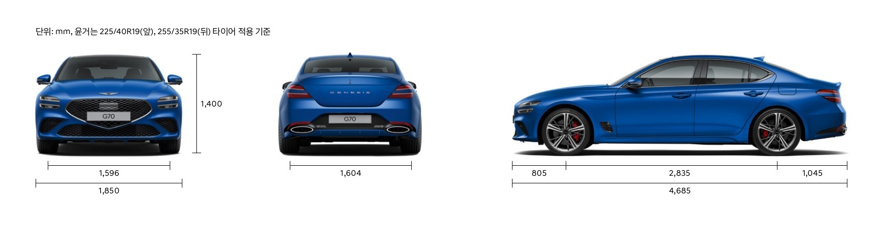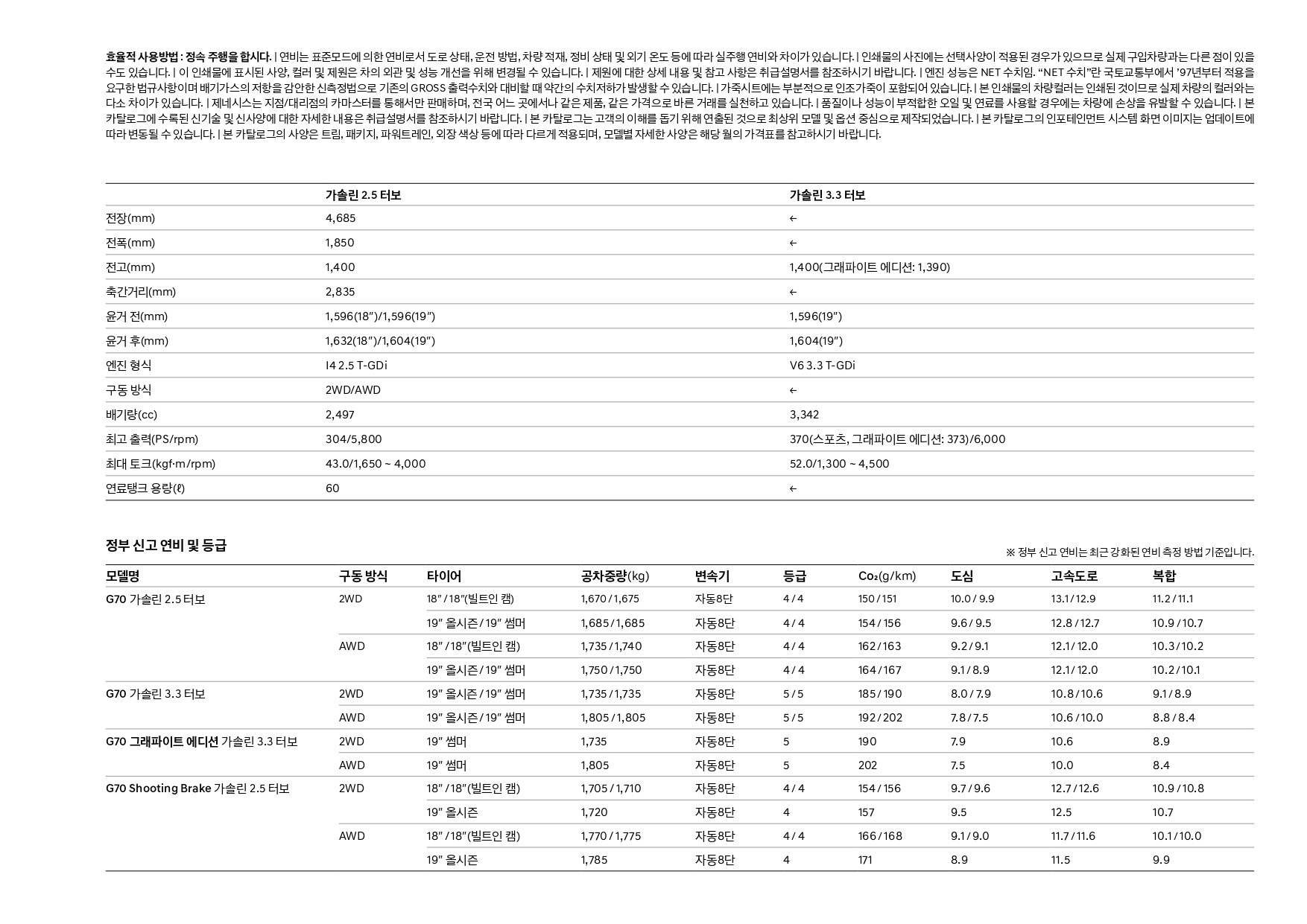 마지막으로 G70 제원입니다.