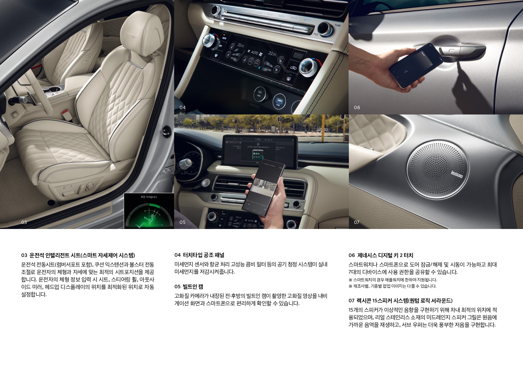 첫 번째 특징으로는 먼저 출시한 형님들과 마찬가지로, 제네시스 레터링을 제외한 모든 레터링을 삭제하여, 제네시스 라인업의 통일성을 부여하였습니다.