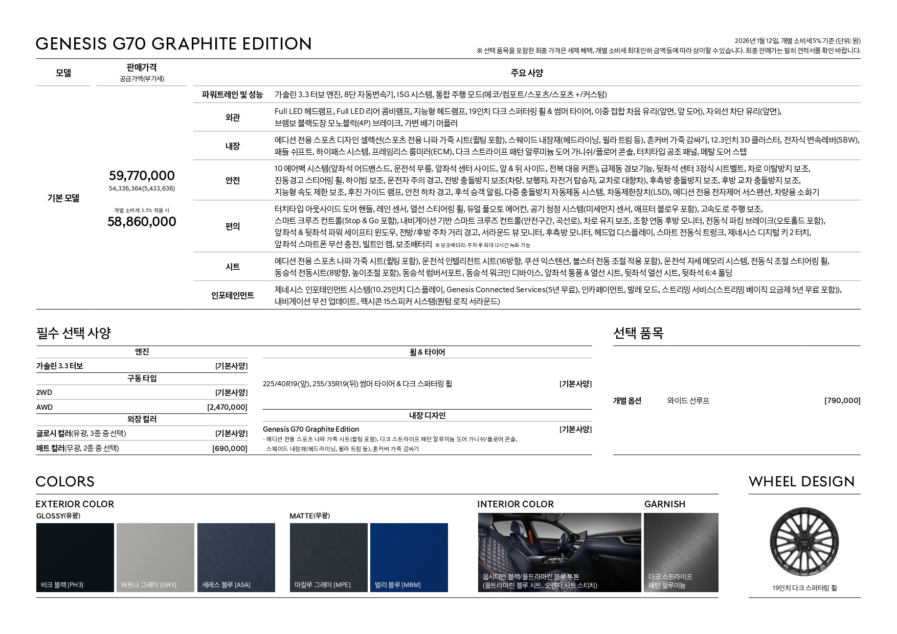 ▼ 2026 G70 그래파이트 가격표 ▼