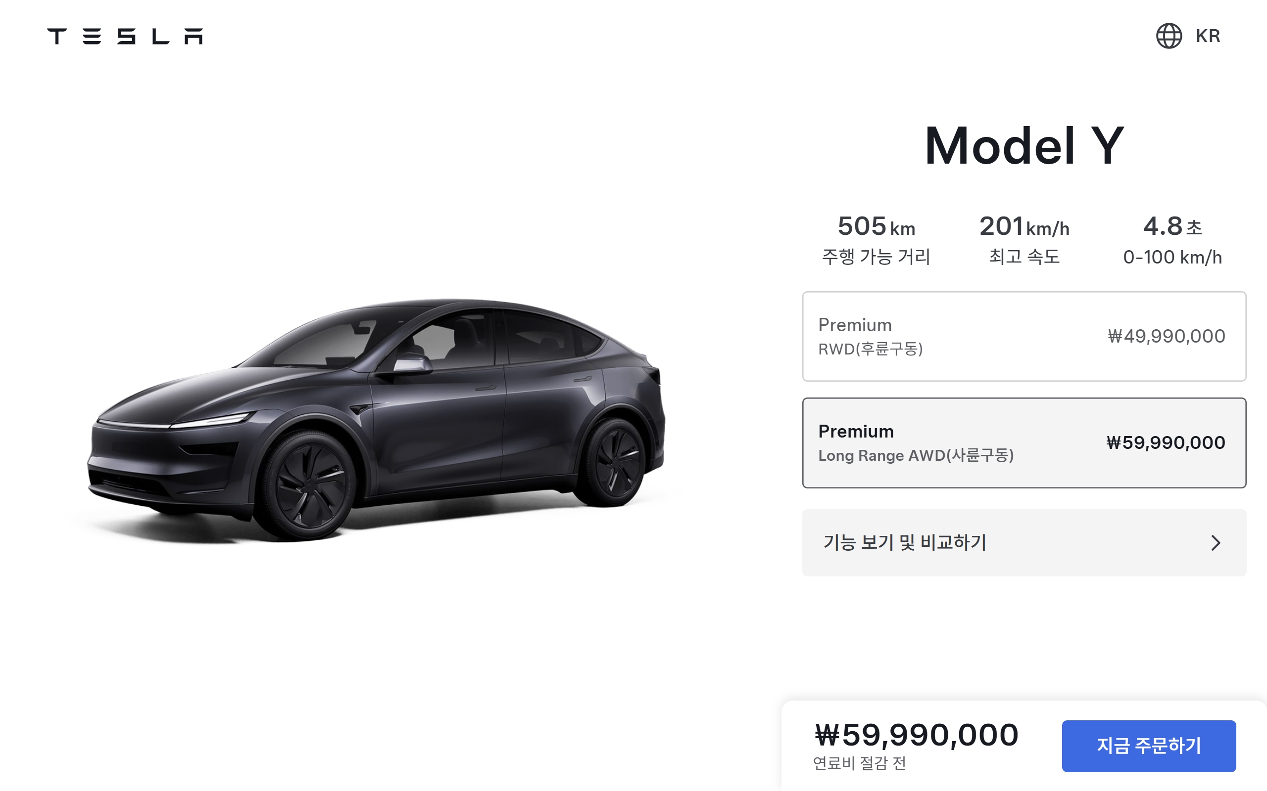모델 Y 프리미엄 롱레인지 AWD : 5,999 만원